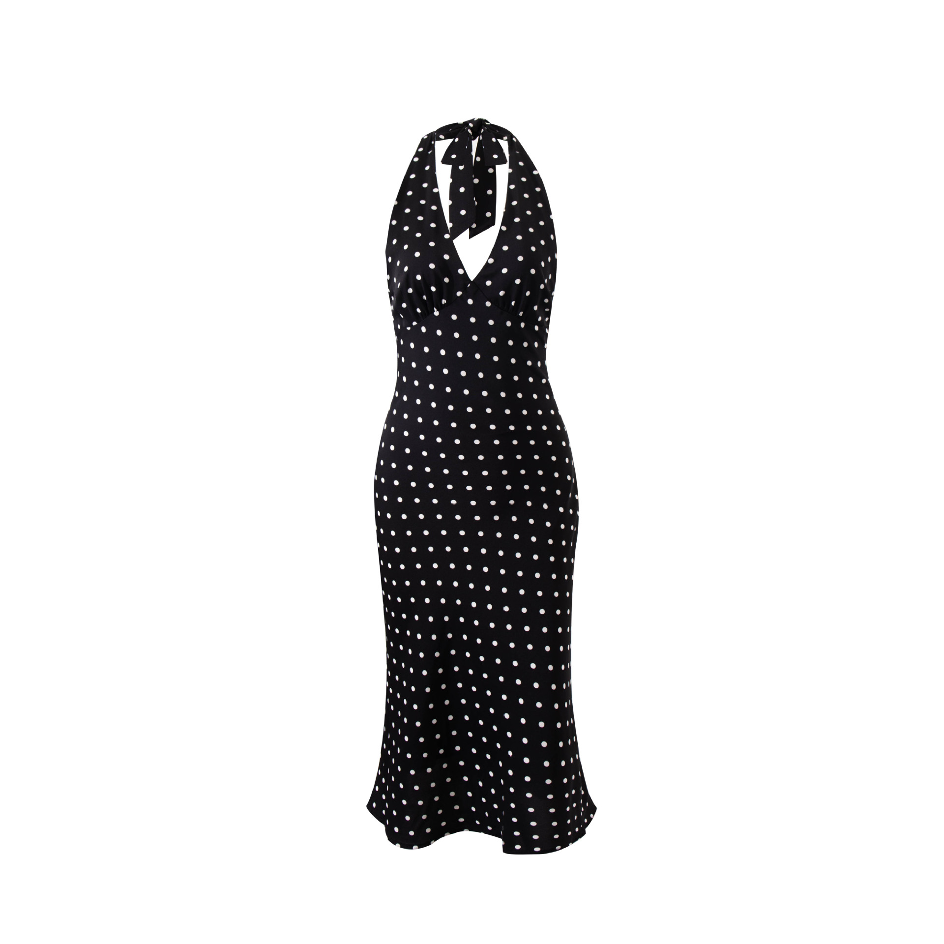 Holiday style polka dot print halter neck sexy hip skirt dress
