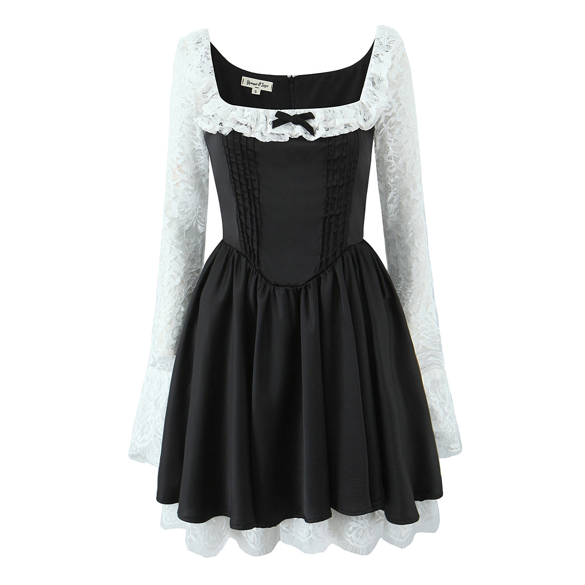 Ballet style retro lace stitching bow satin waist dress
