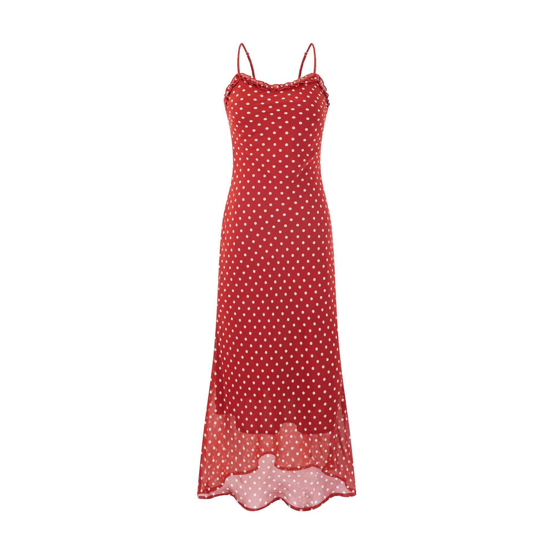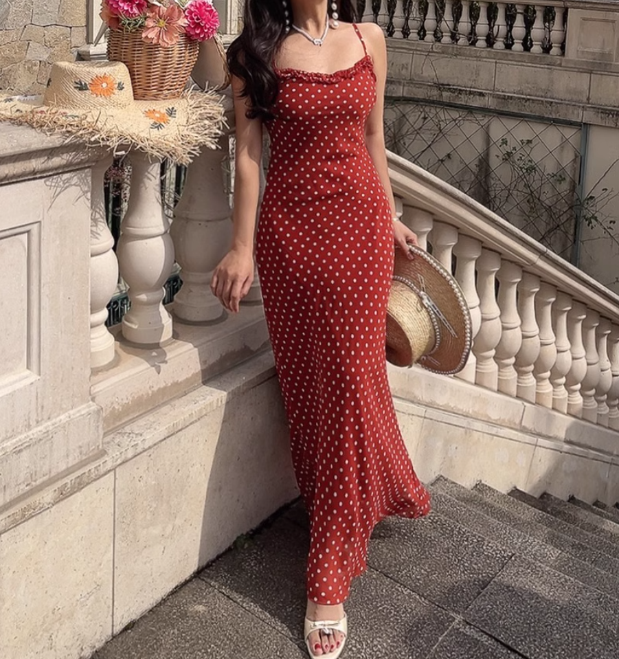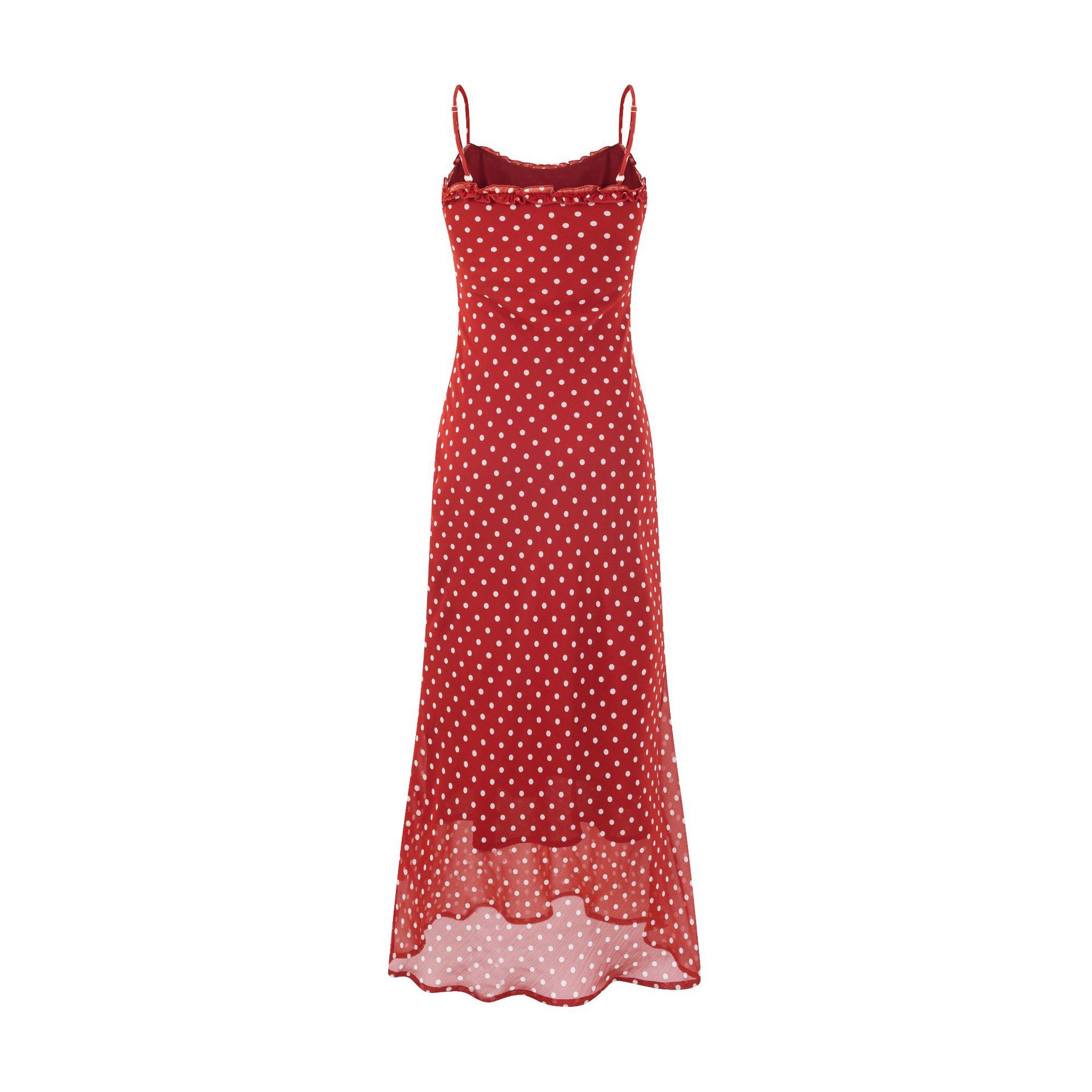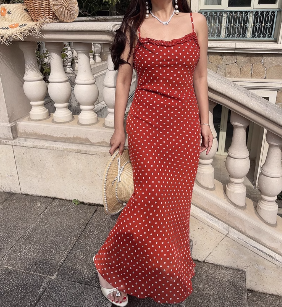 Summer beach holiday style lace collar red bottom polka dot print dress