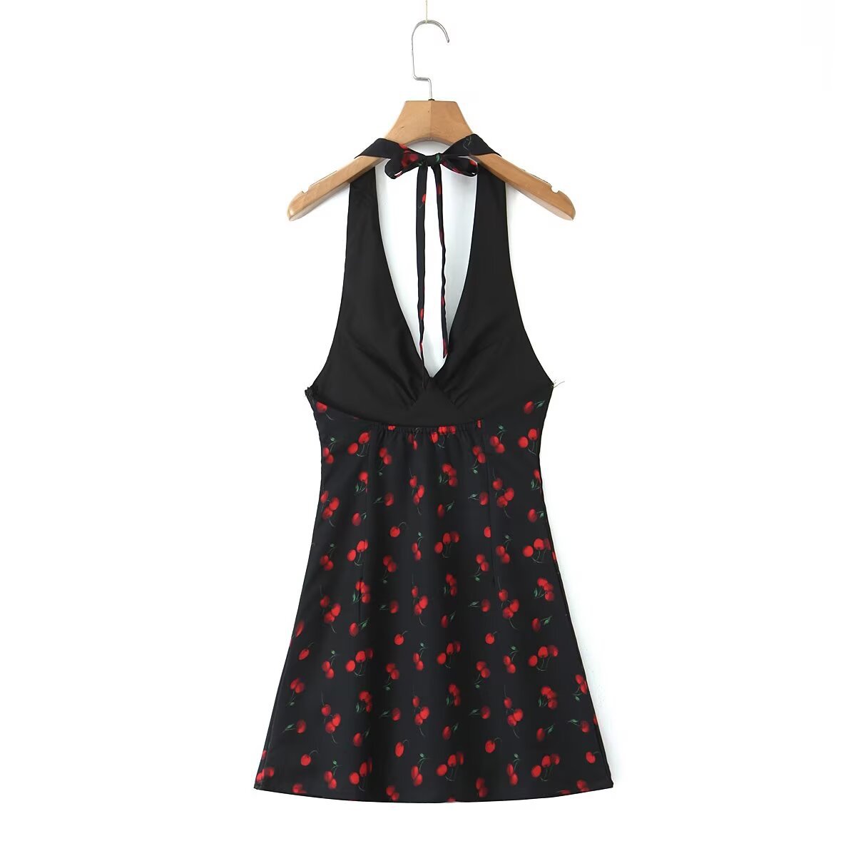 Sexy Deep V-Neck Backless Printed Halter Dress