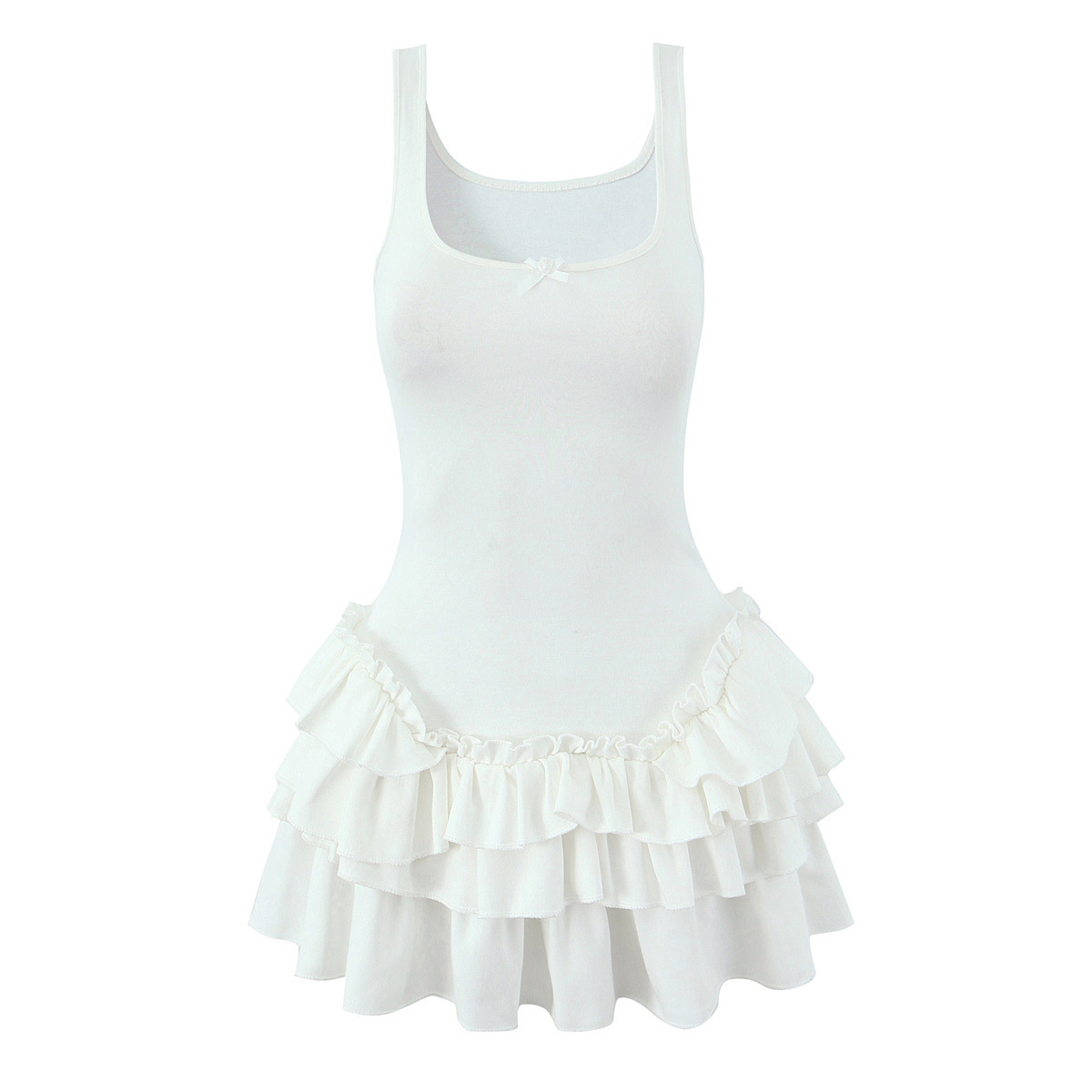 Sexy U-neck collarbone exposed sleeveless tutu dress