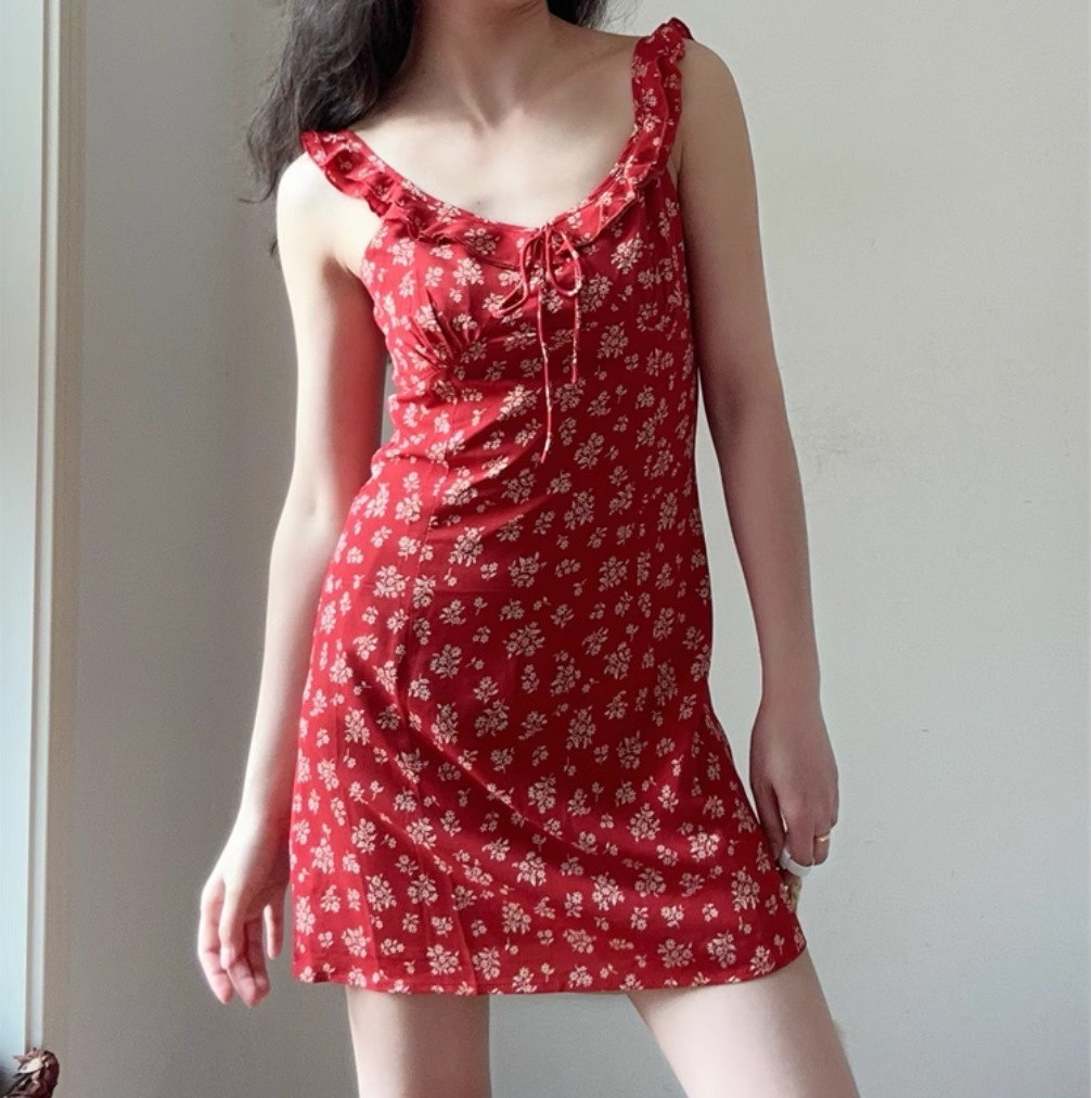 Retro Red Floral Suspender Dress