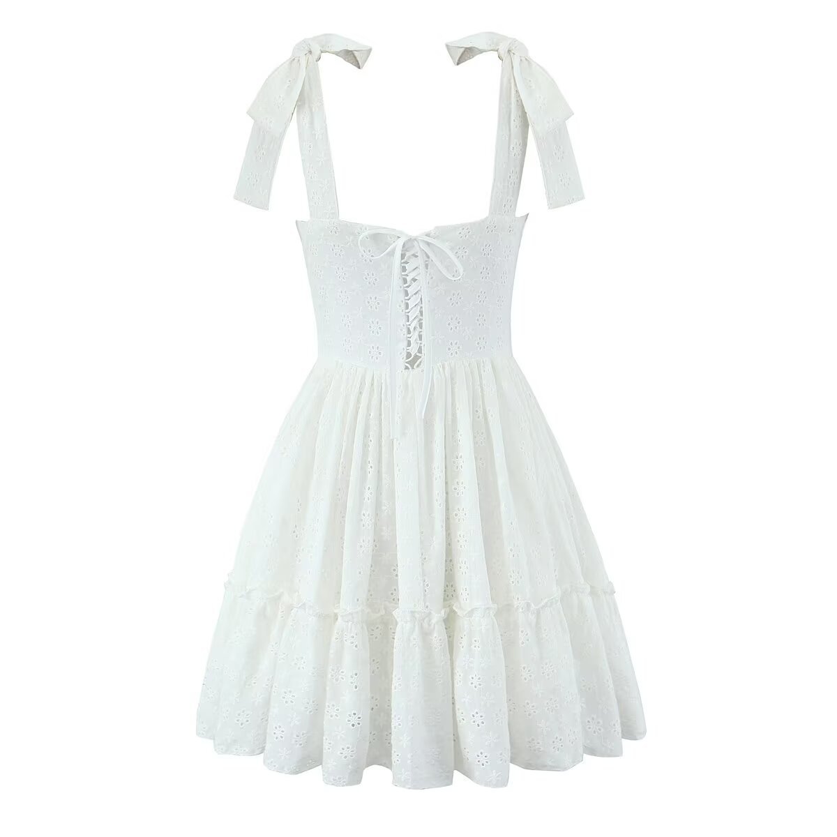 Lace-up embroidered tube top waist dress summer seaside vacation suspender skirt