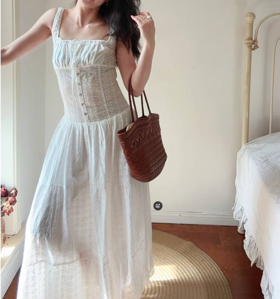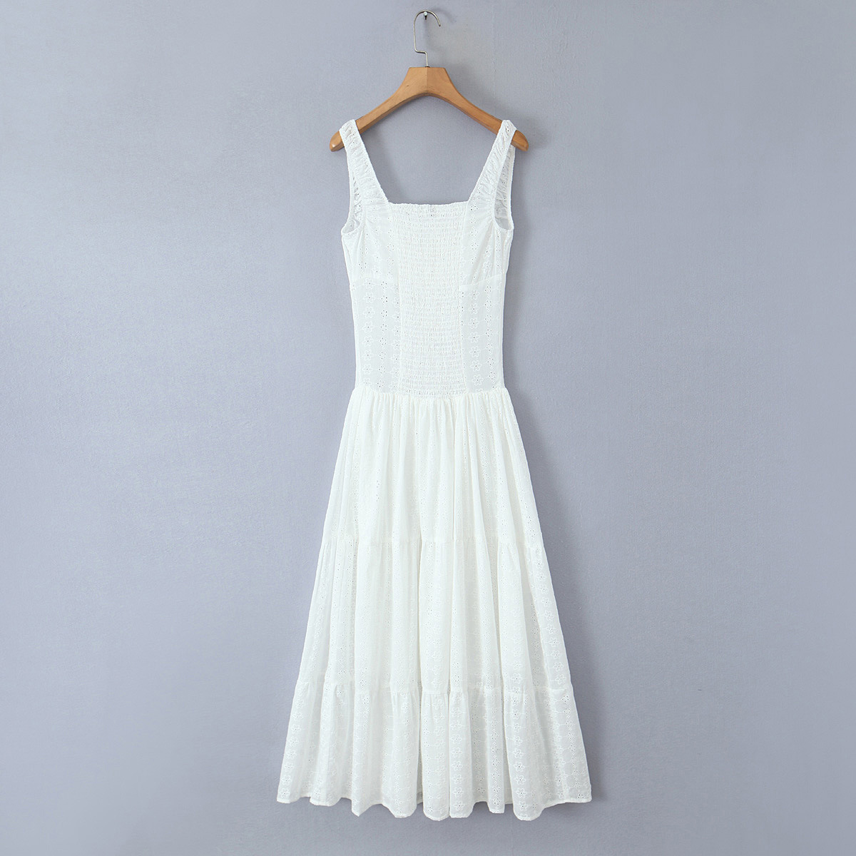 Retro romantic embroidery girl sexy square neck slim suspender dress
