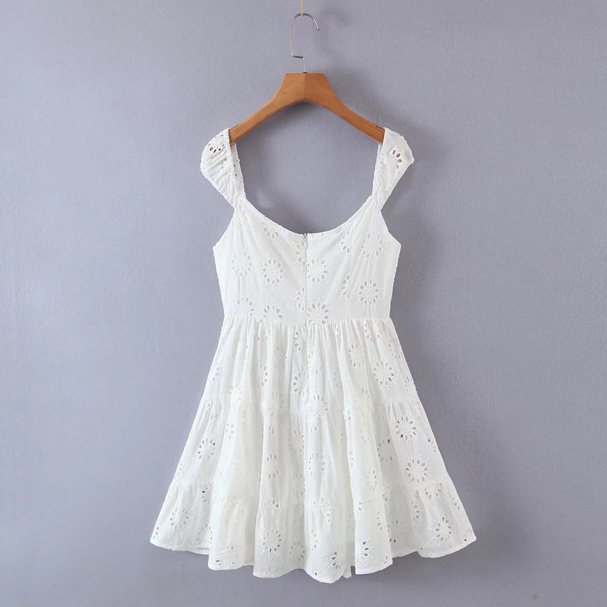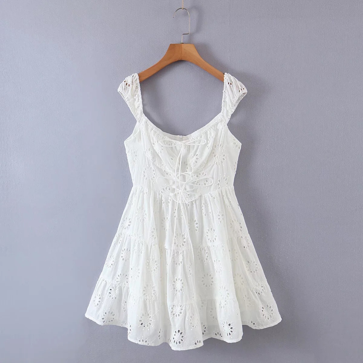 Lace Square Neck Three-Dimensional Small Flower Double-Layer Lace Hem Dress