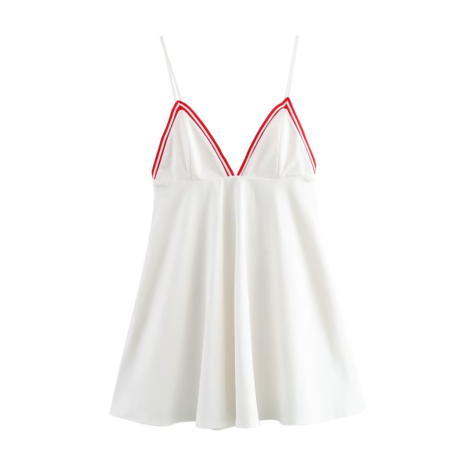Simple casual vacation lining V-neck lace-up sleeveless dress