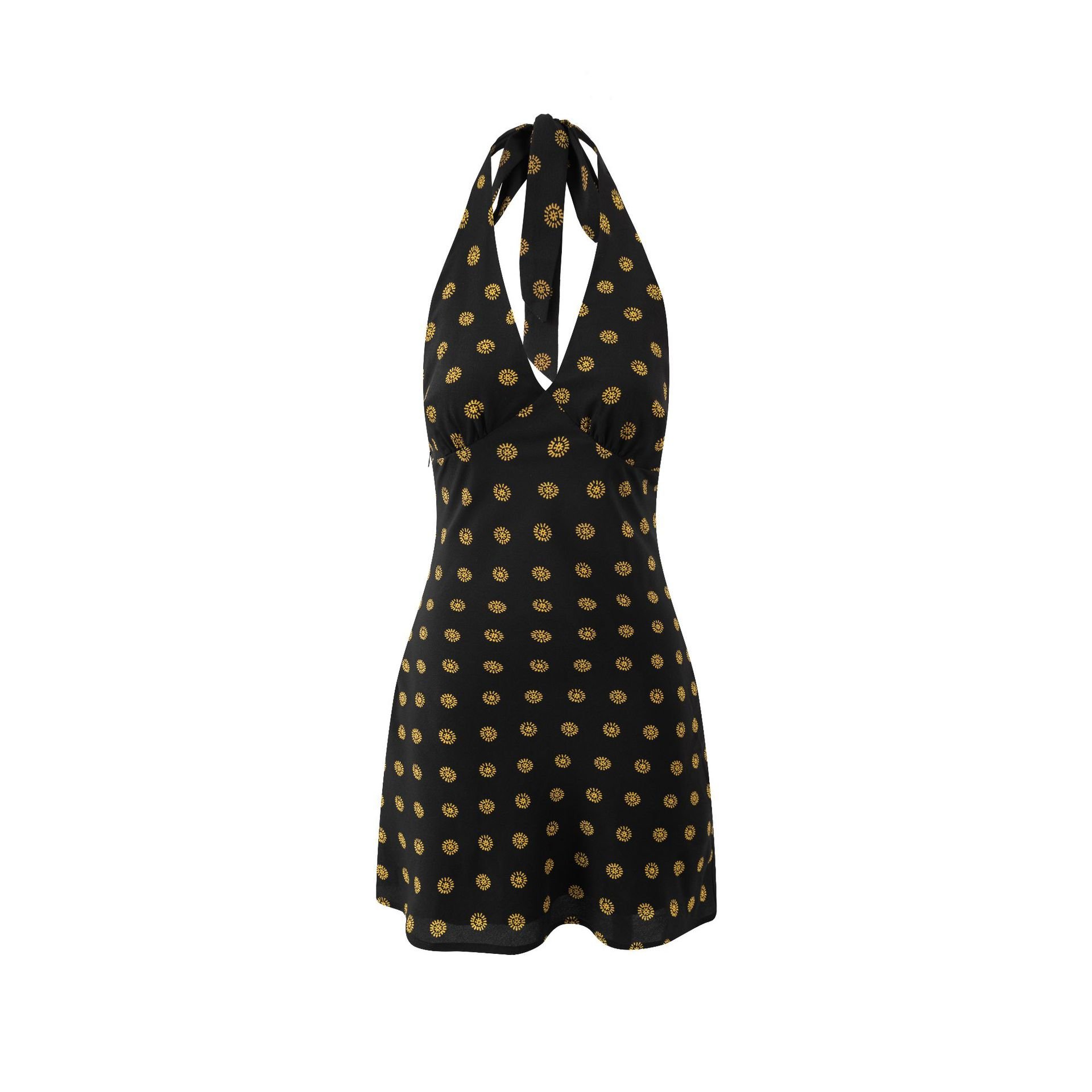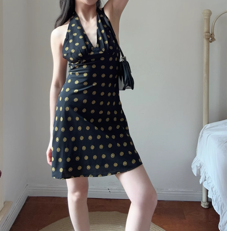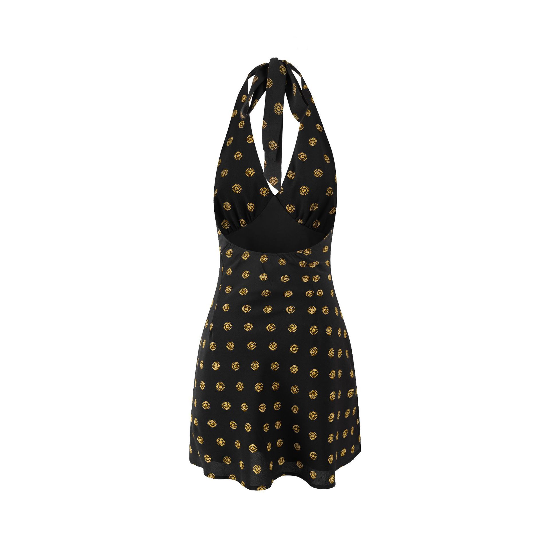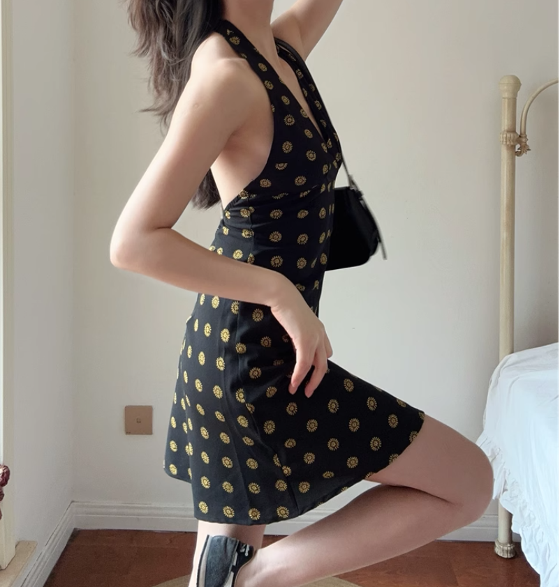 Holiday Style Polka Dot Silk Sexy Deep V Neck Strap Halter Dress