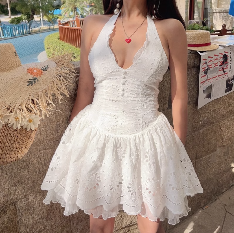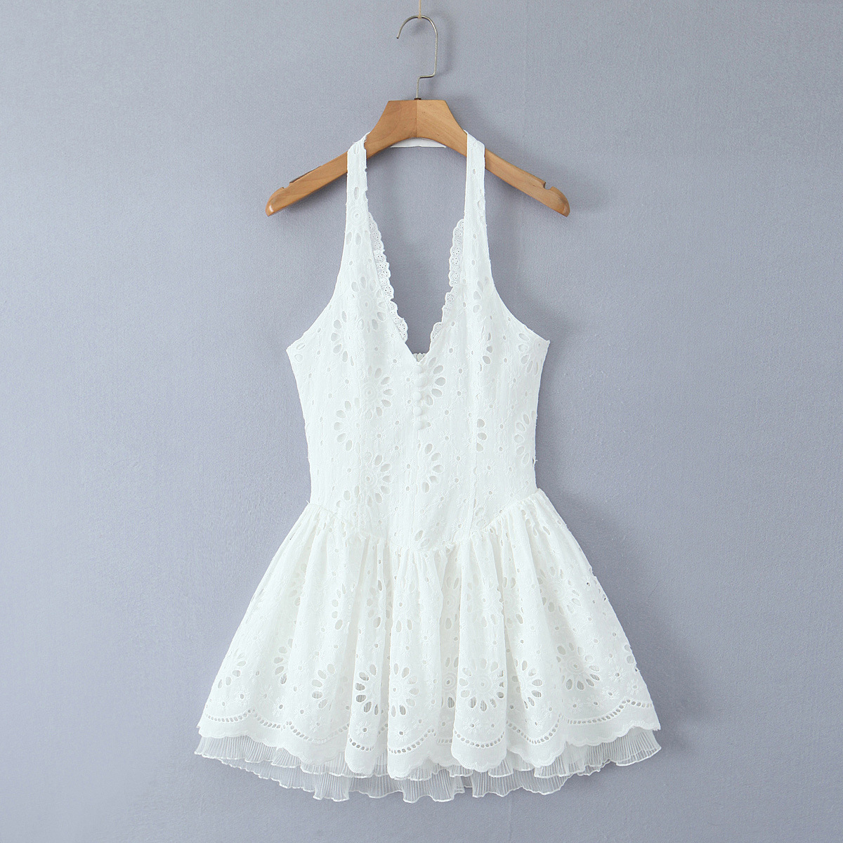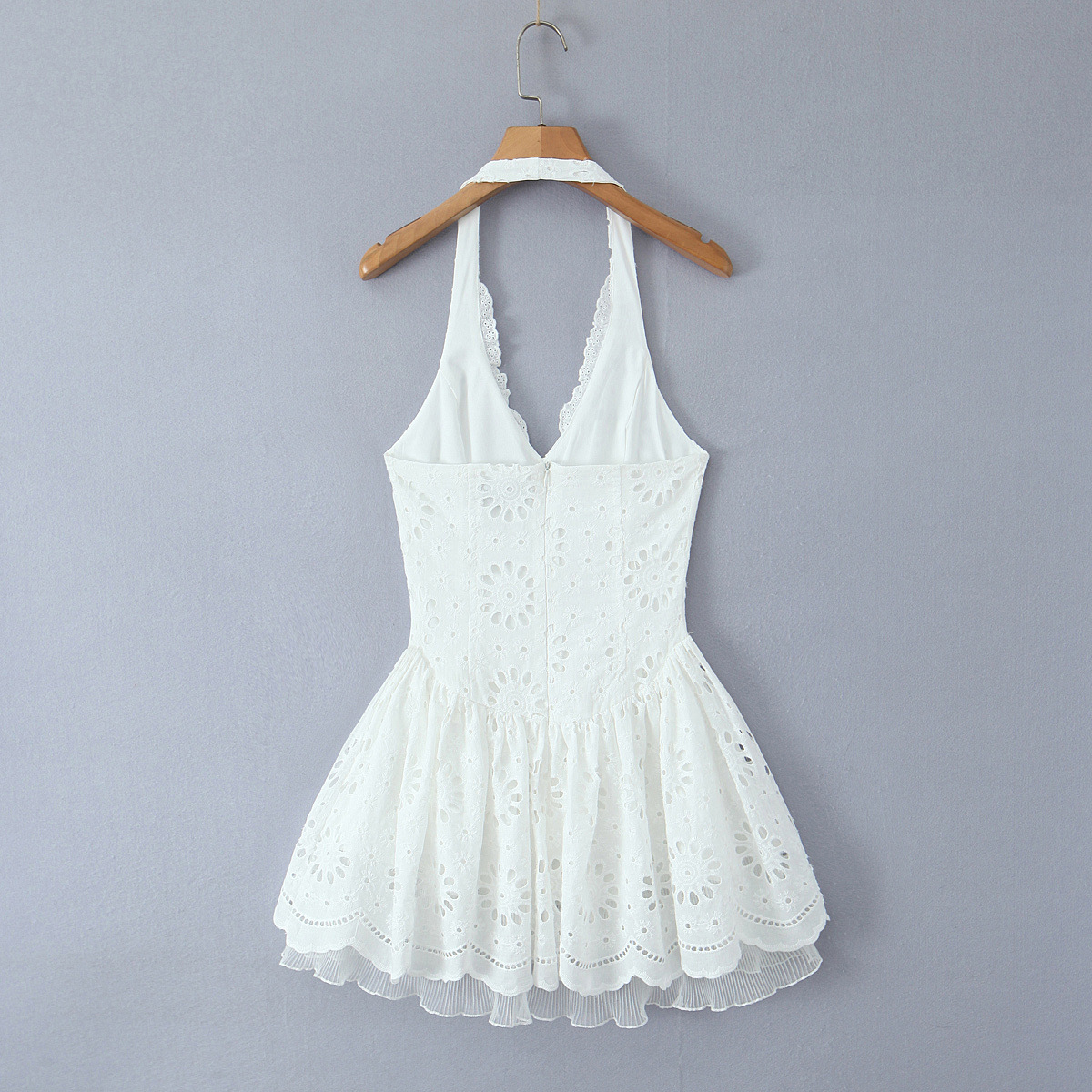 Sexy Holiday Lace Embroidery Girl Halter Neck Slim Dress
