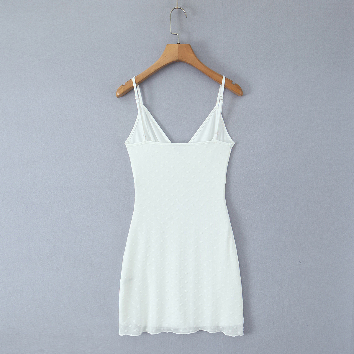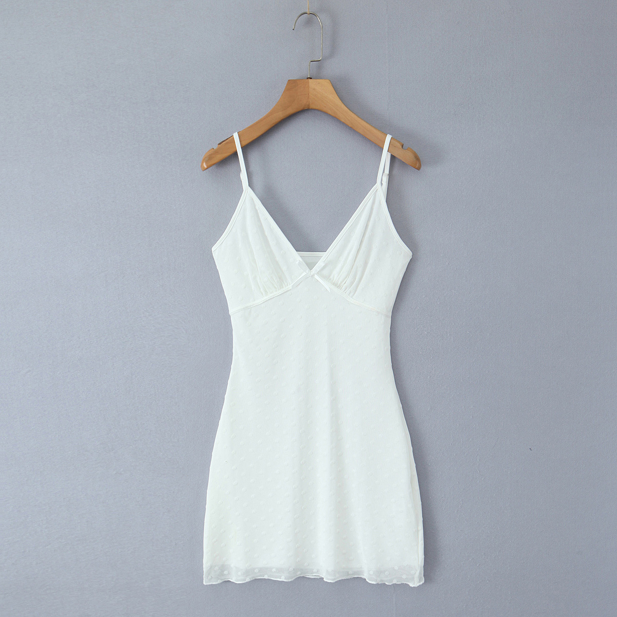 White sexy deep V-neck flocked polka dot mesh suspender dress
