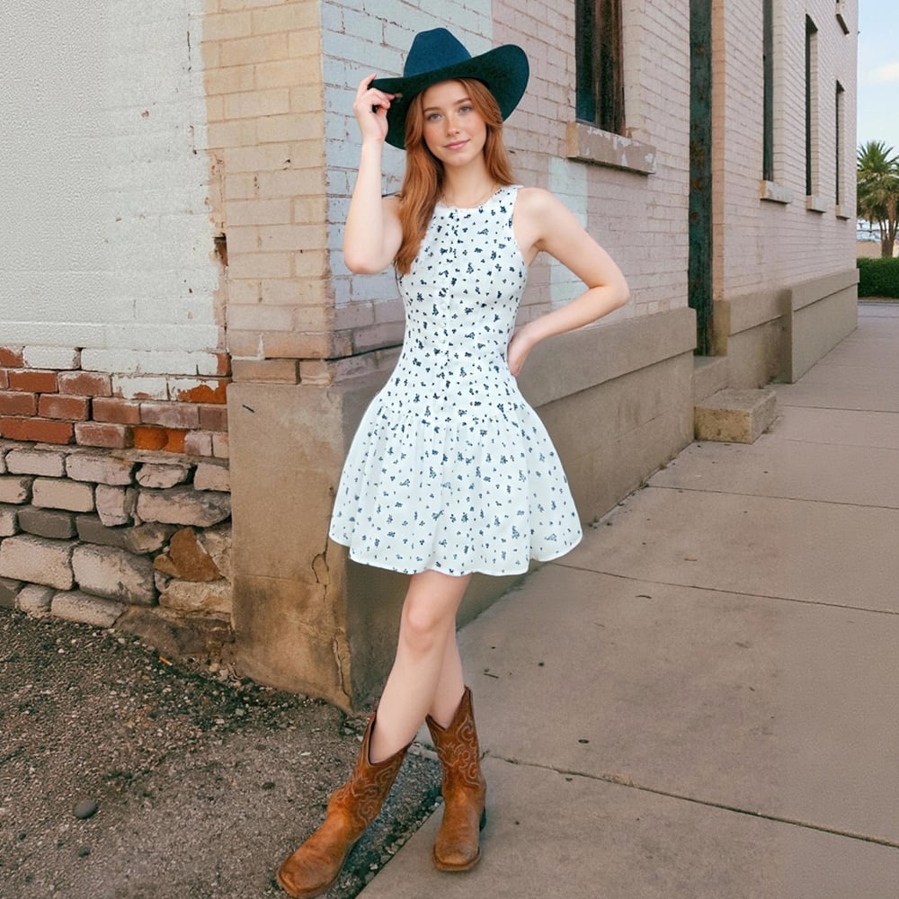 Retro Square Neck Puff Sleeve Summer Fishbone Waist Princess Puffy Miniskirt