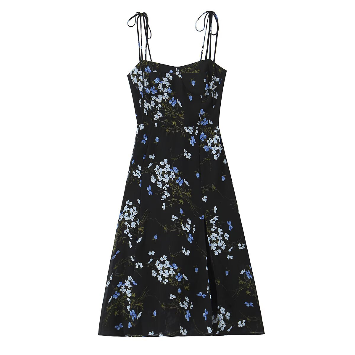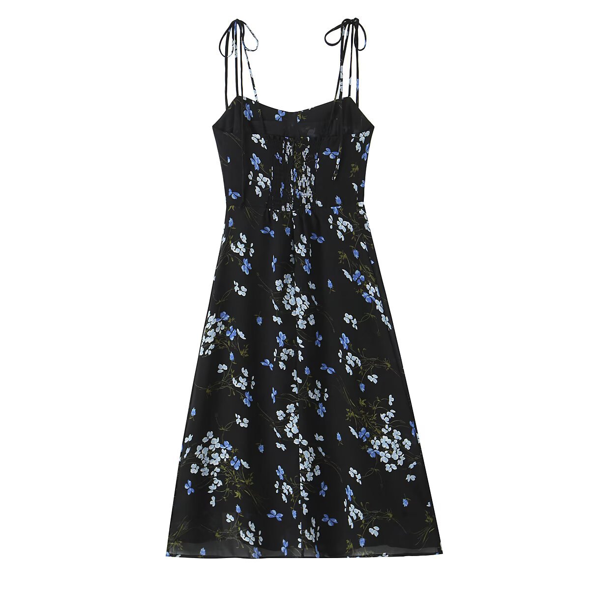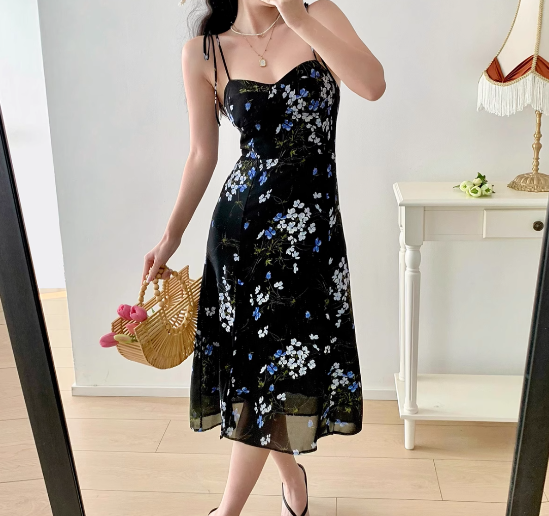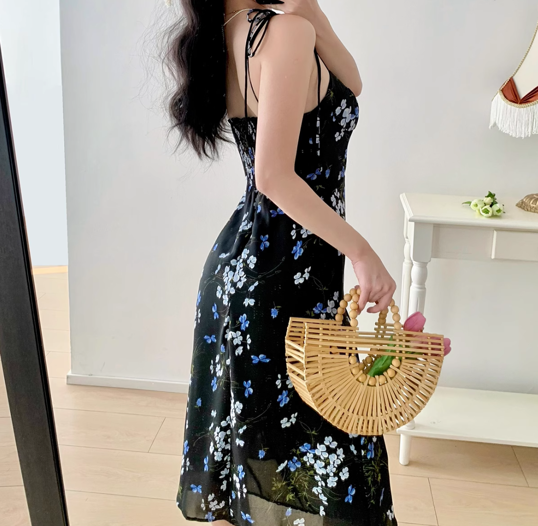 Holiday leisure fresh solid color strap halter neck stitching large swing dress