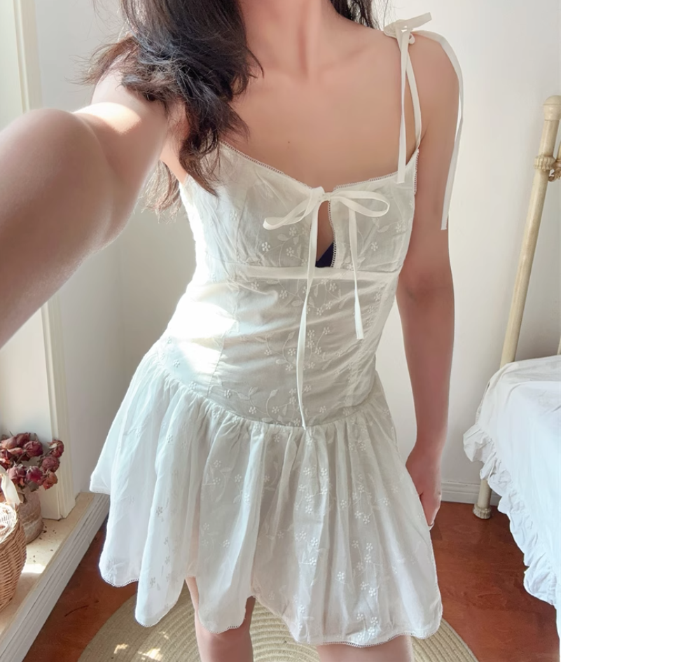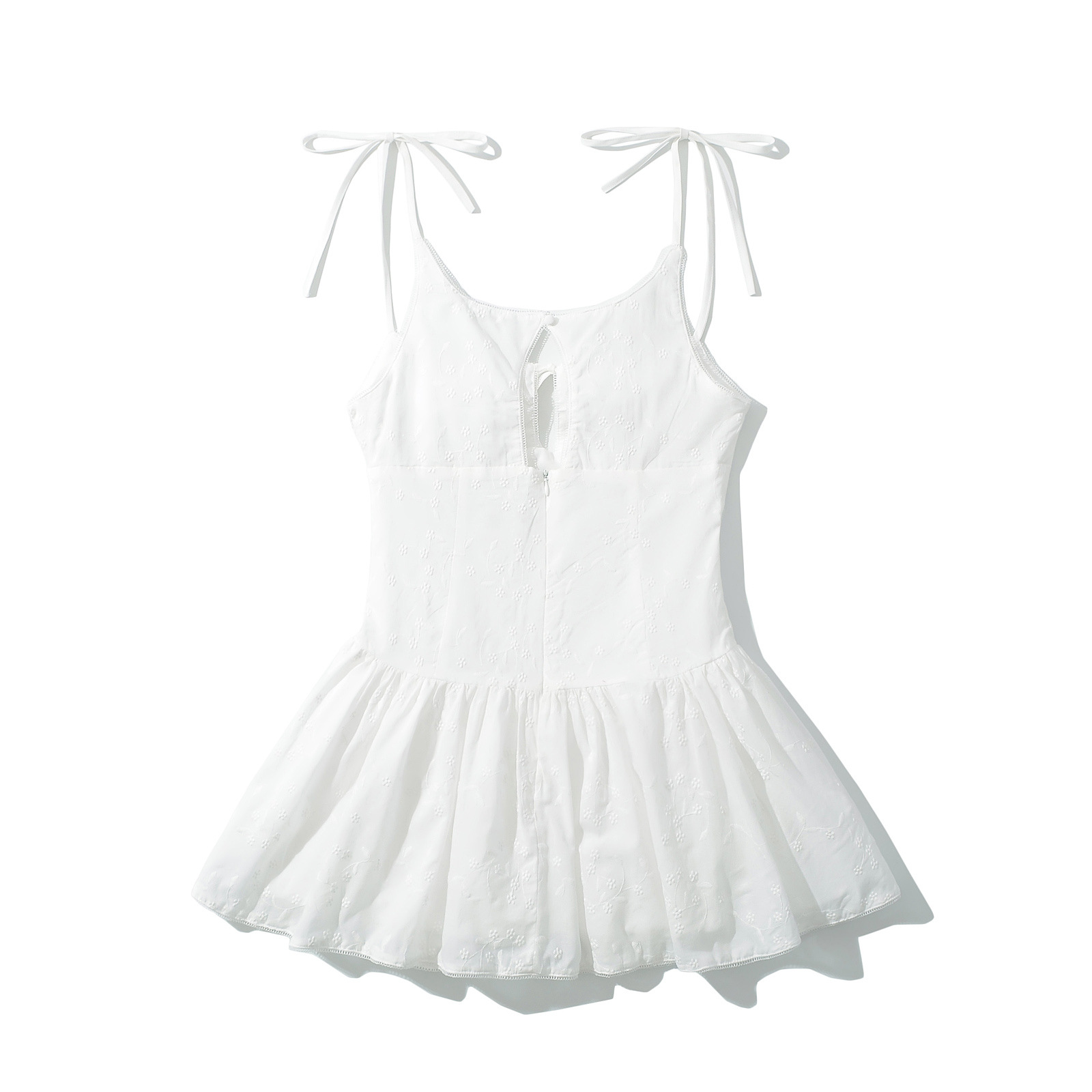 Lace-up hollow embroidery suspender skirt Holiday style lace-up dress