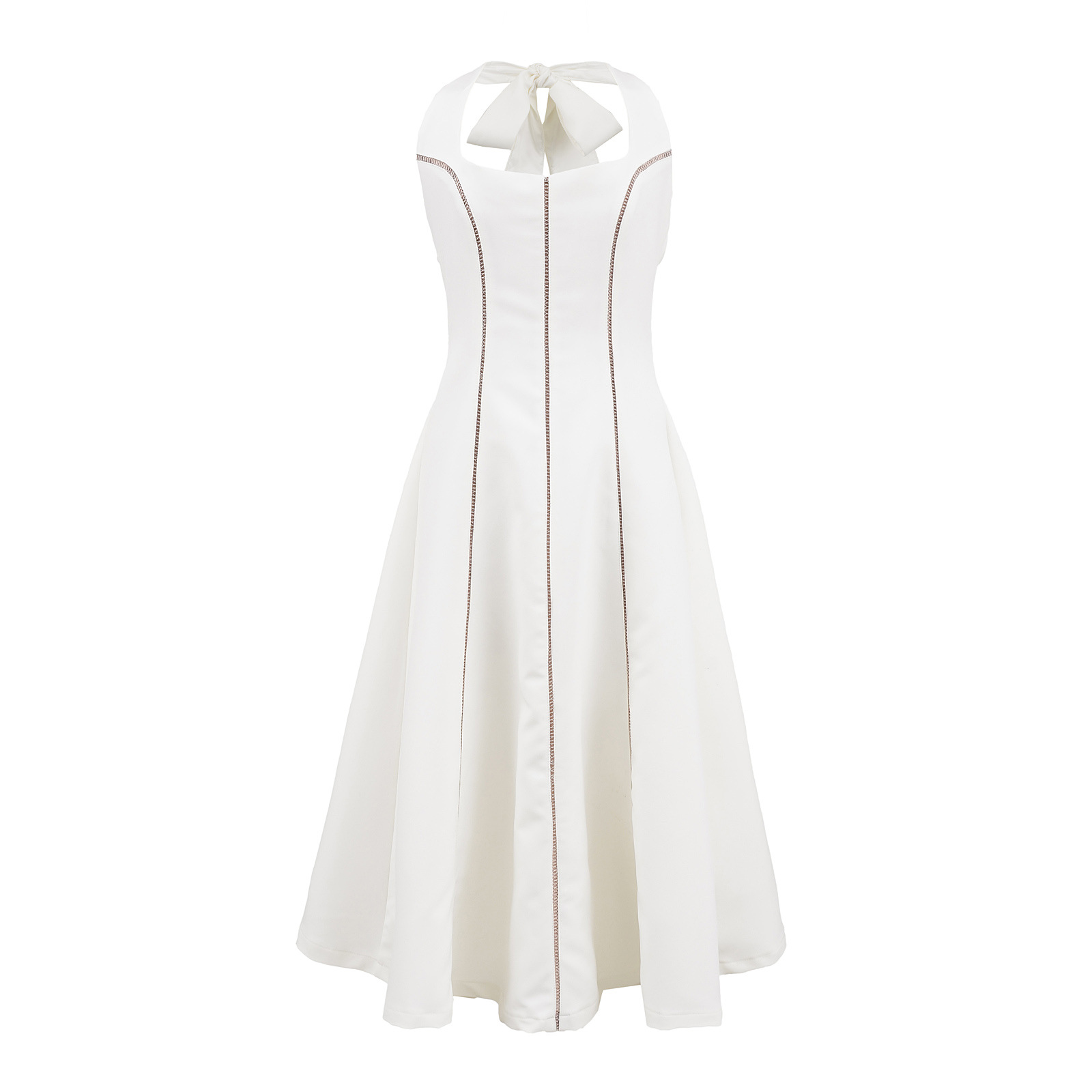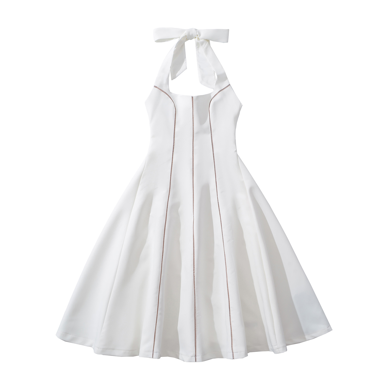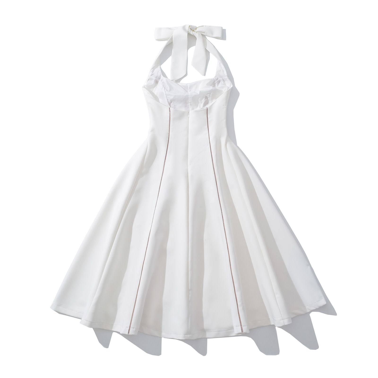 Sexy halter-neck sleeveless dress with a backpack and irregular hip design