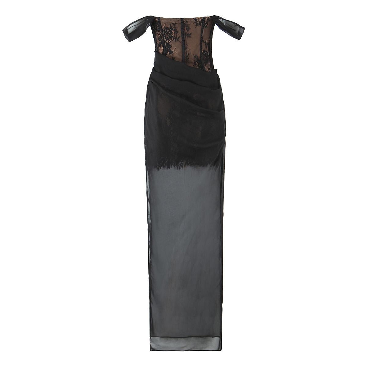 Sexy tube top one-shoulder neck color matching slim fit dress