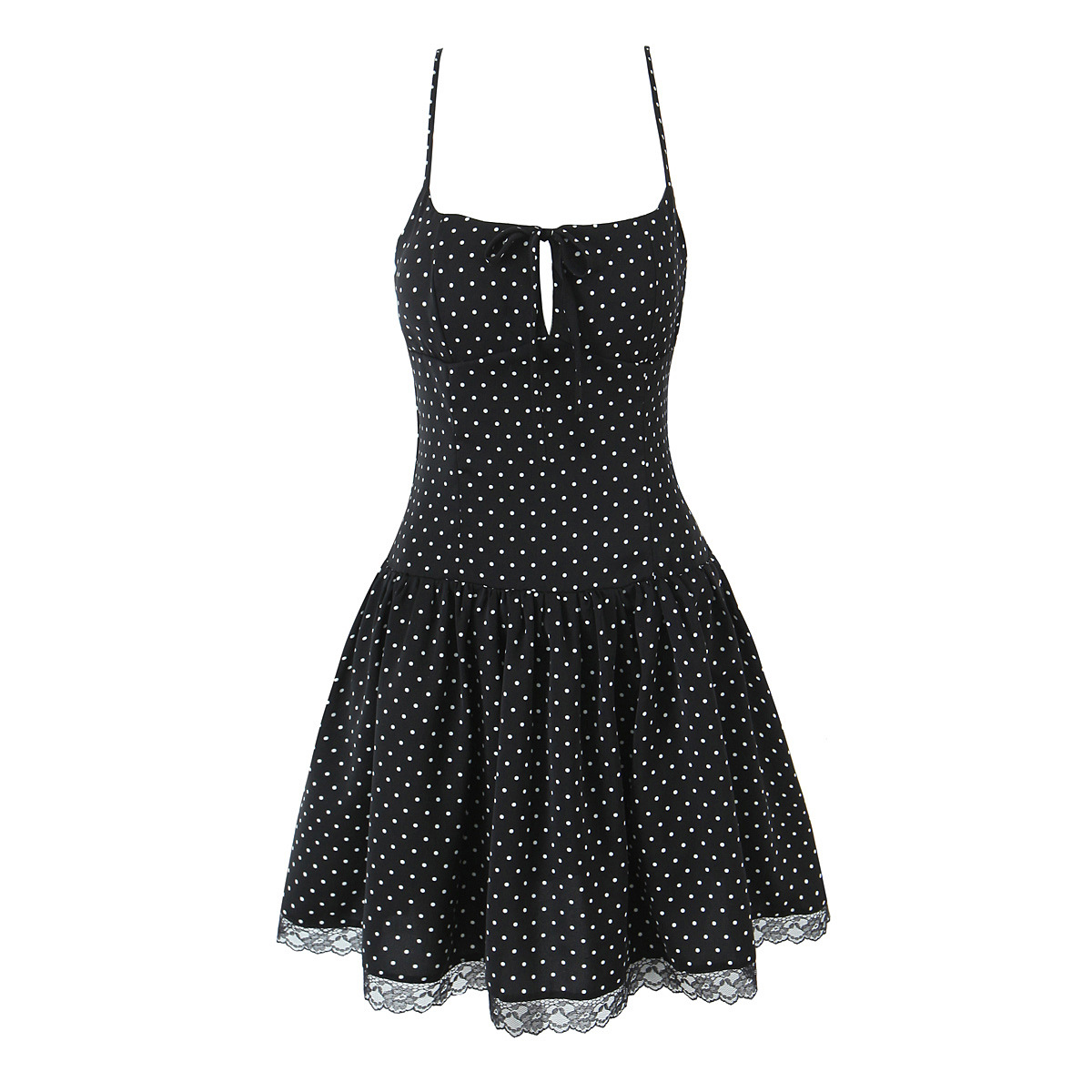 Sexy Polka Dot Lace Bowknot Suspender Dress