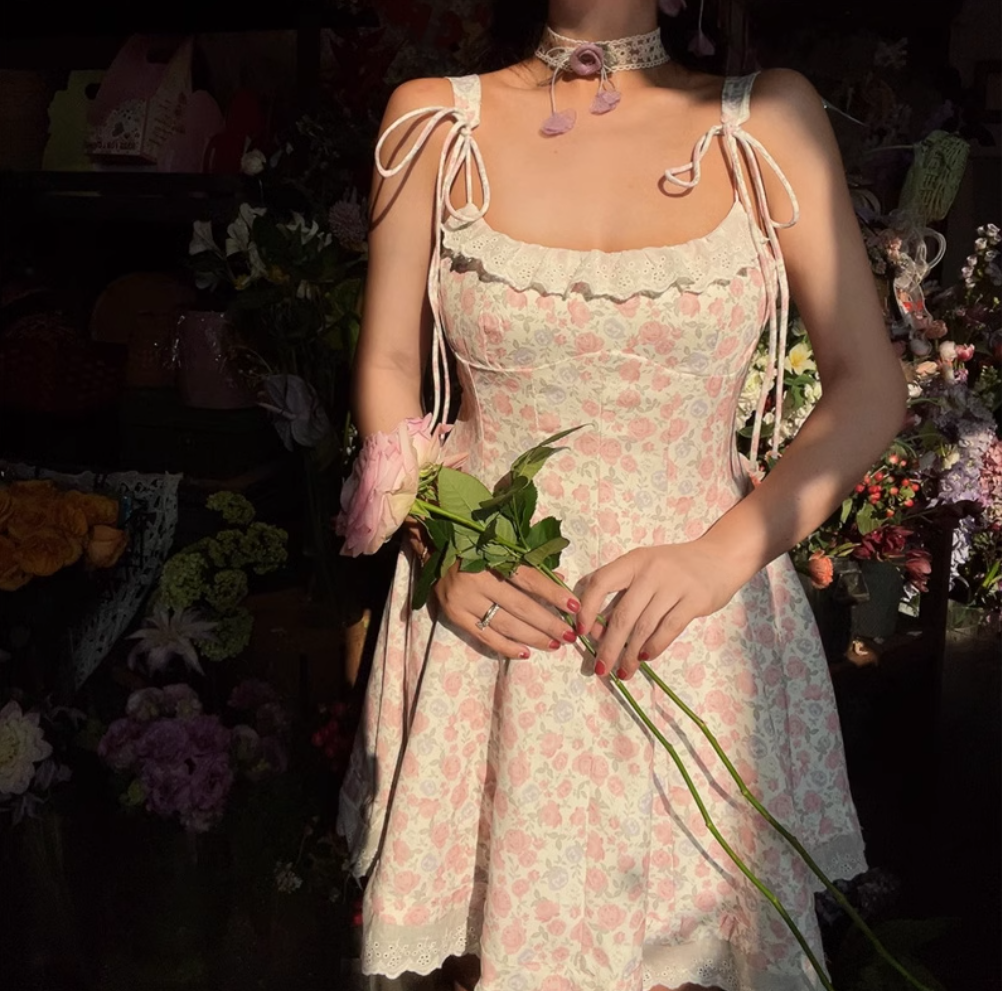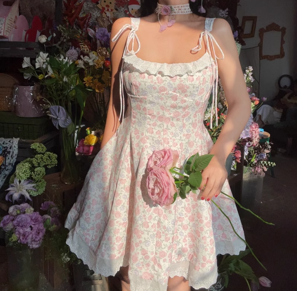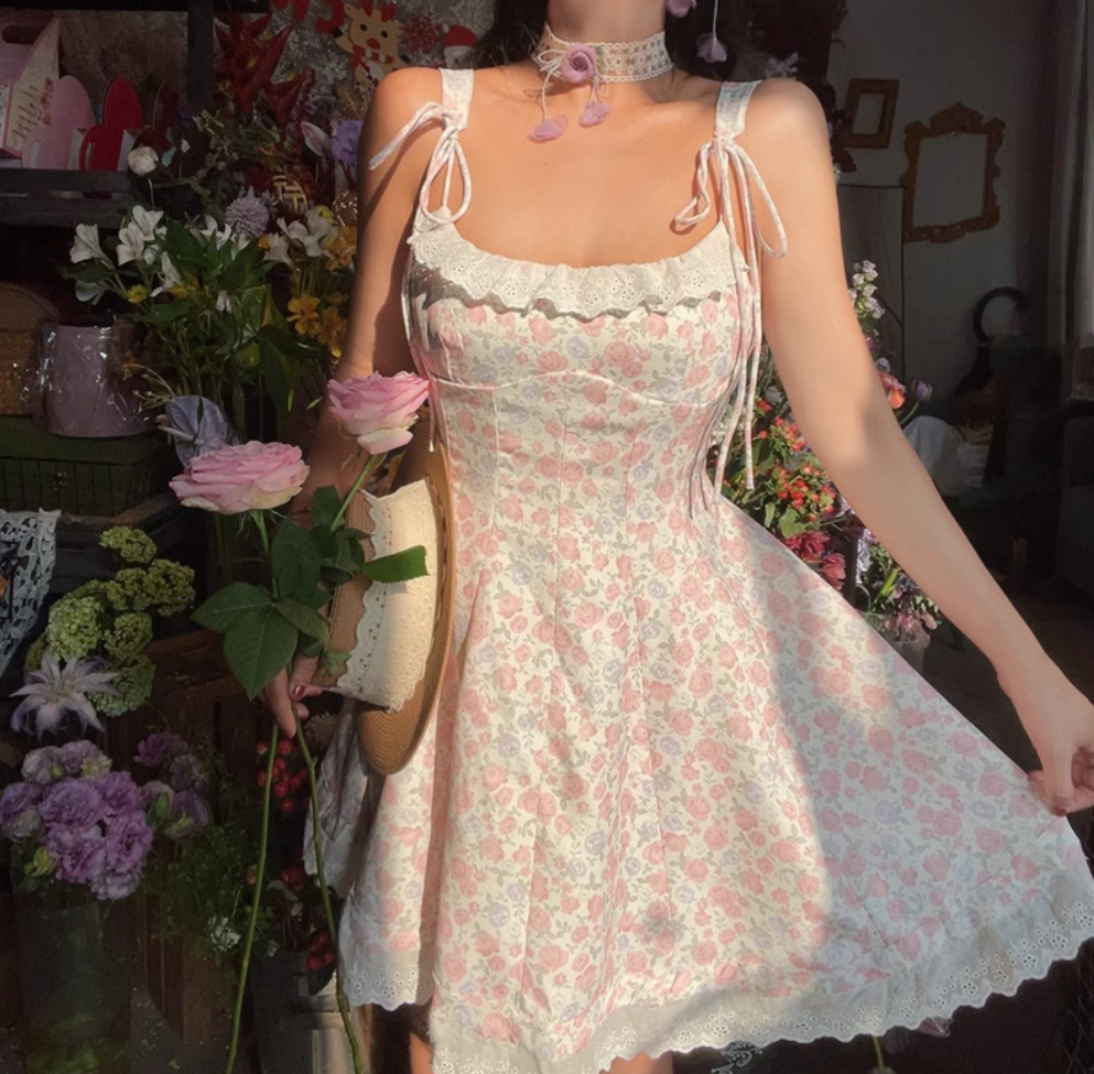 Girls sweet flying sleeves ruffled square neck short skirt dress