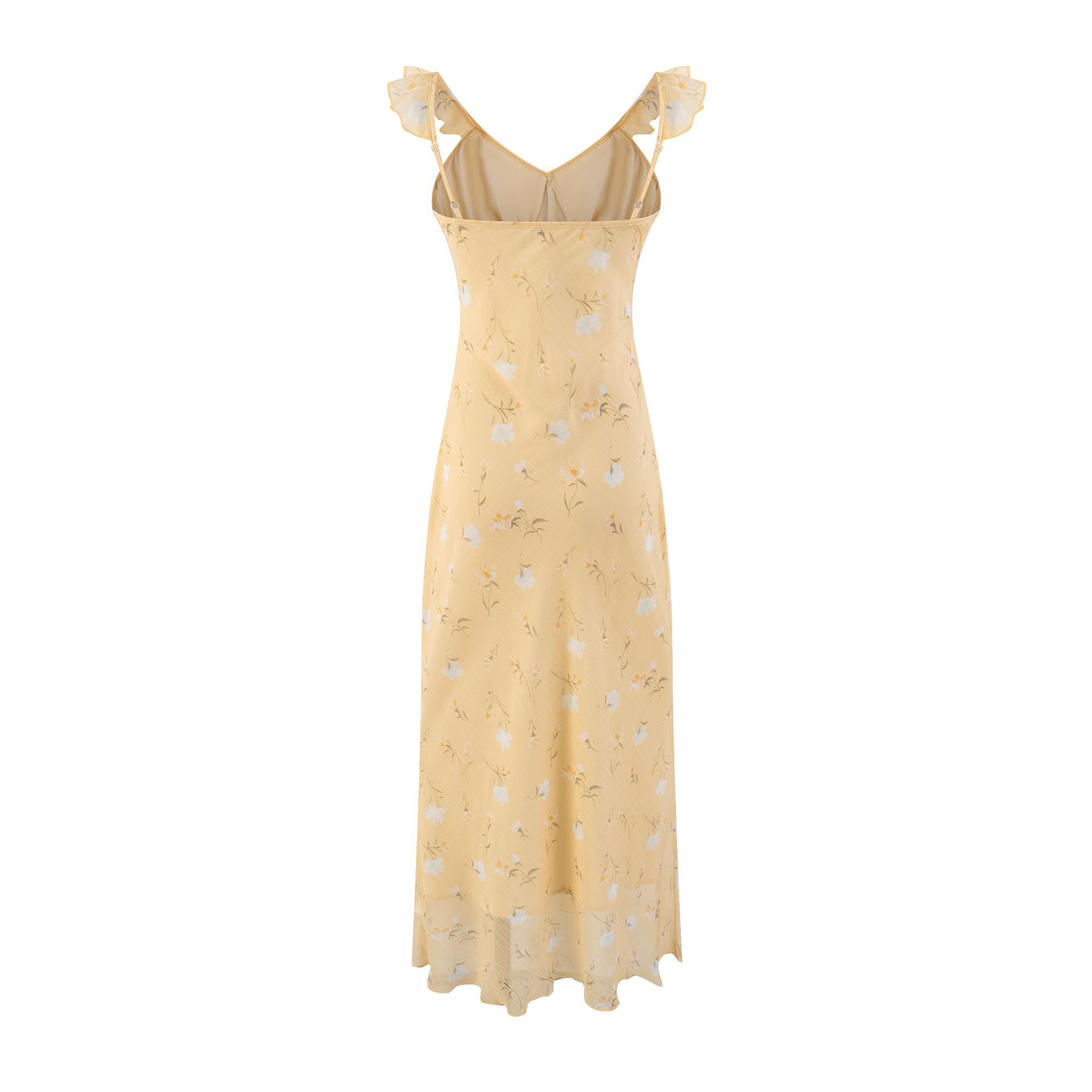 Romantic YELLOW Printed V-Neck Slim Dress