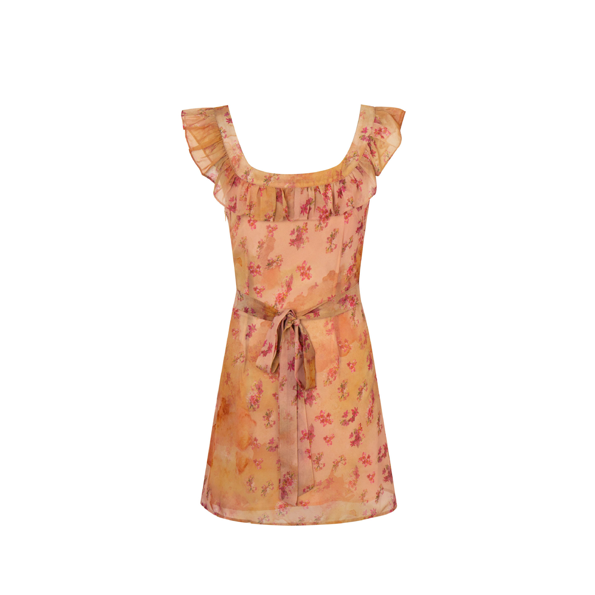 Holiday style ruffled sexy V-neck printed tie waist dress