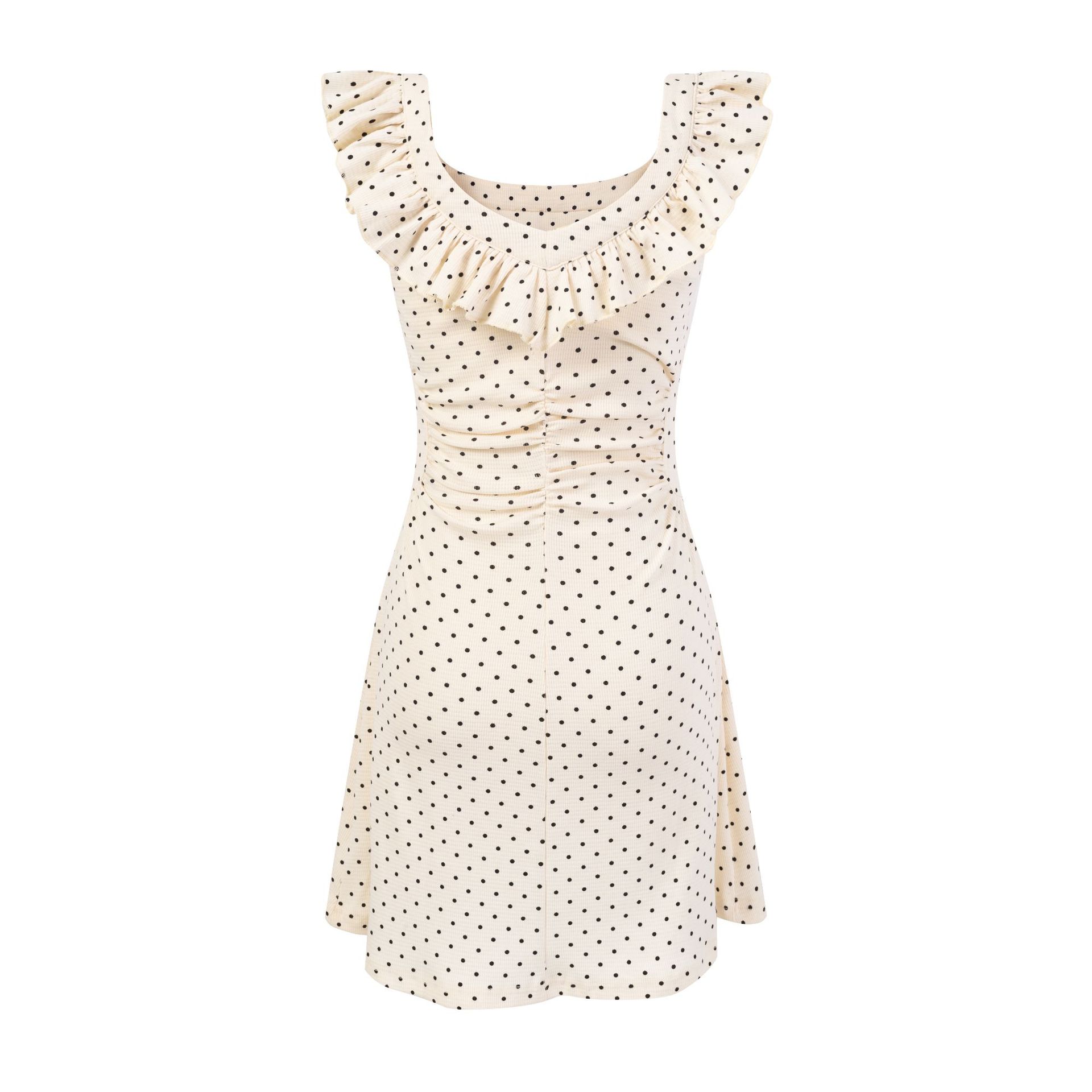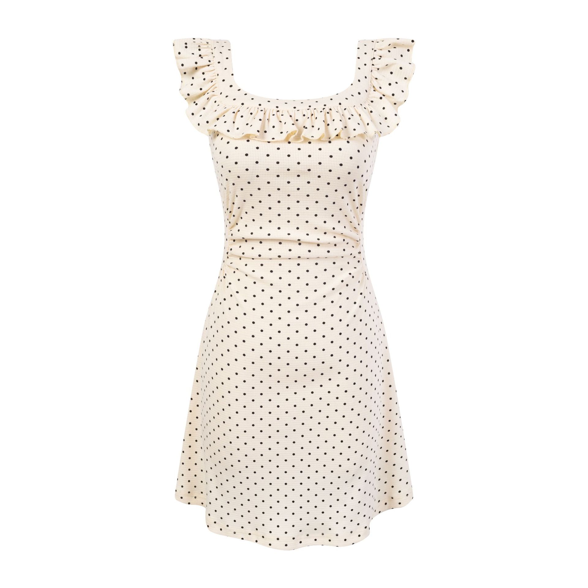 Girls sweet flying sleeves ruffled square neck short skirt dress