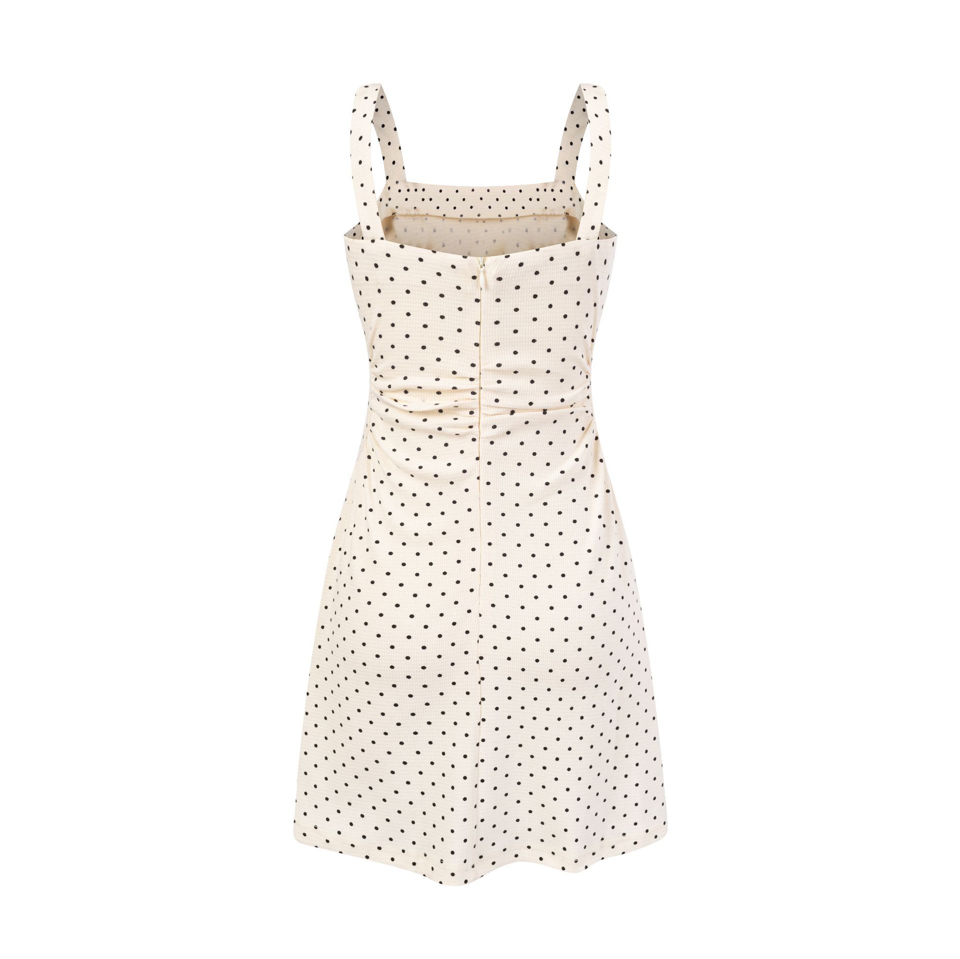 Square Neck Polka Dot Suspender Skirt Retro Holiday Style Dress