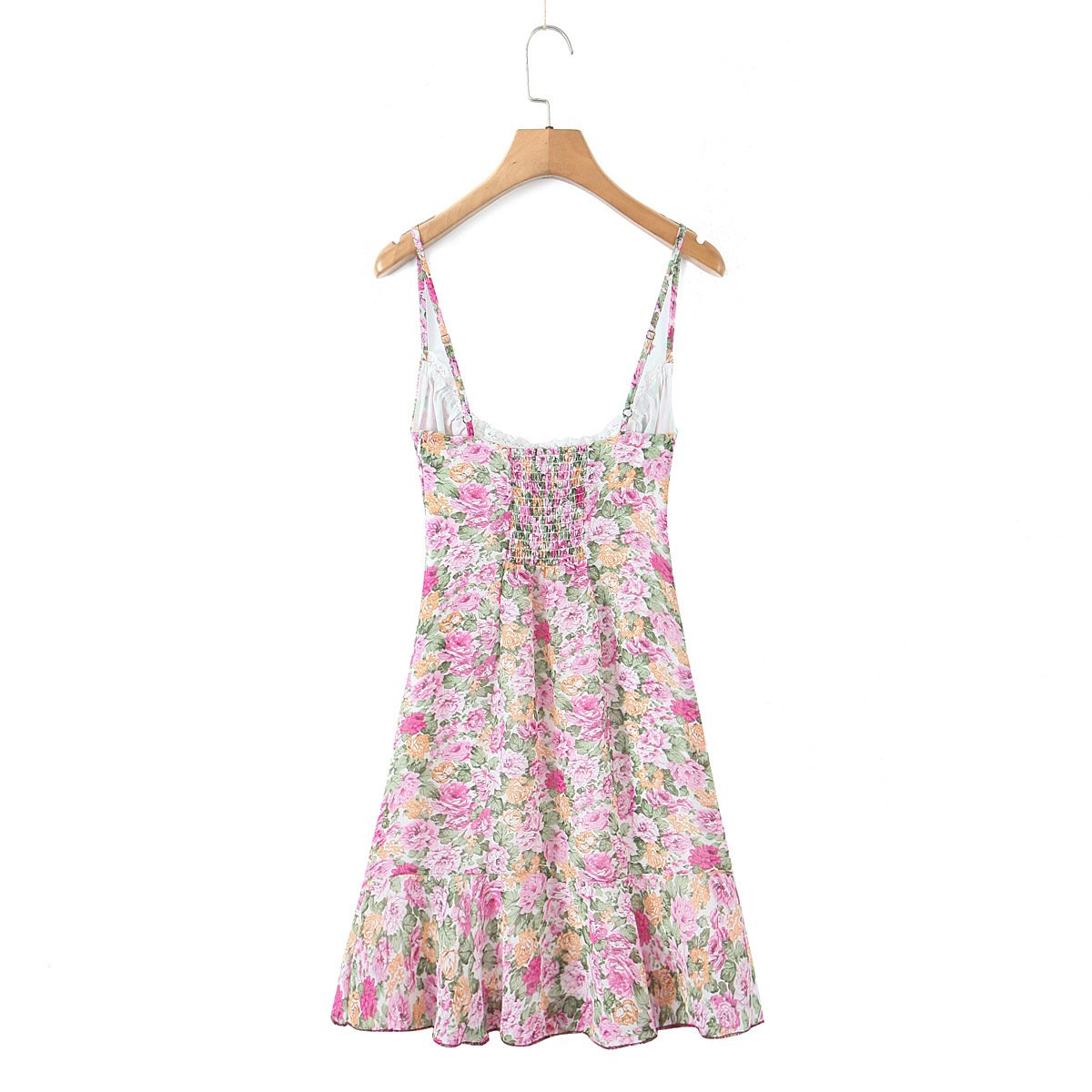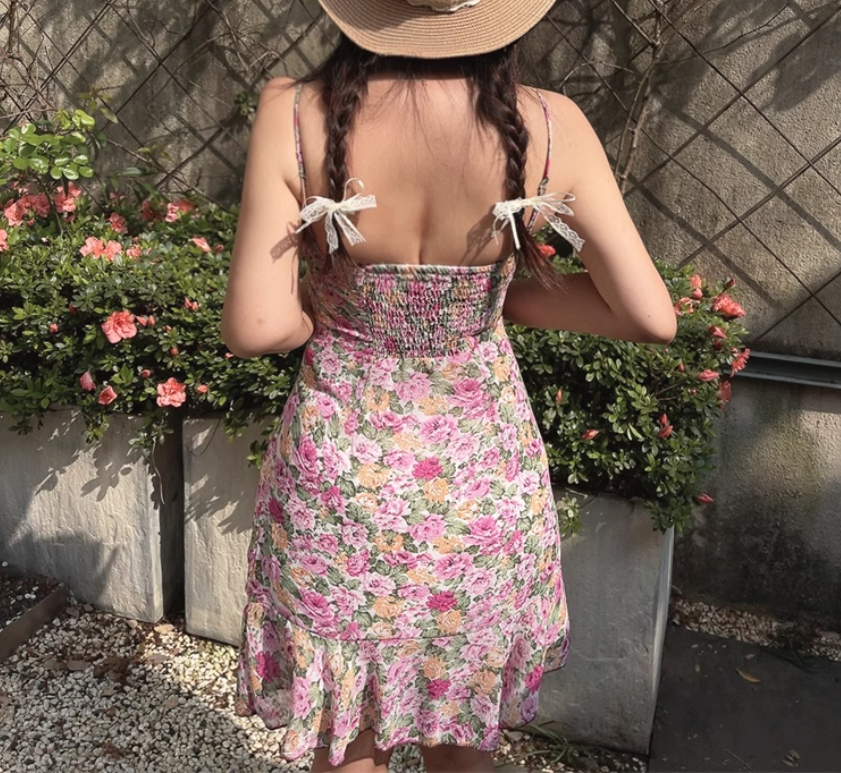 Drawstring bow tie floral print slim fit holiday suspender dress