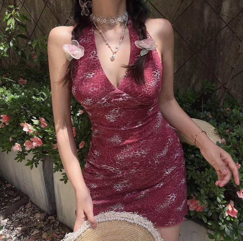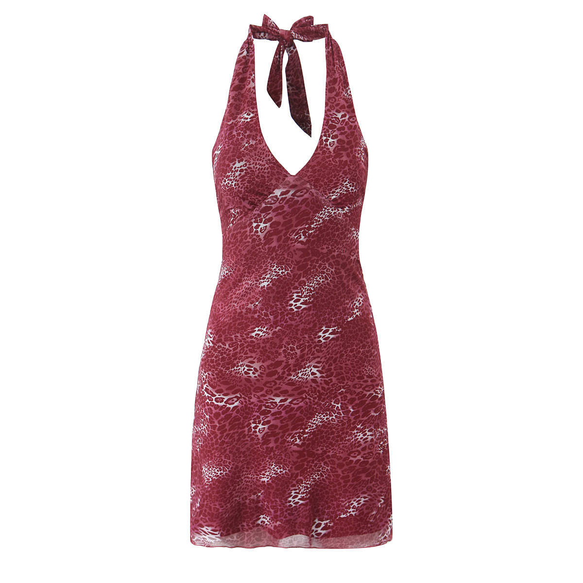 Fashion casual strappy halter neck sexy backless deep V mini dress