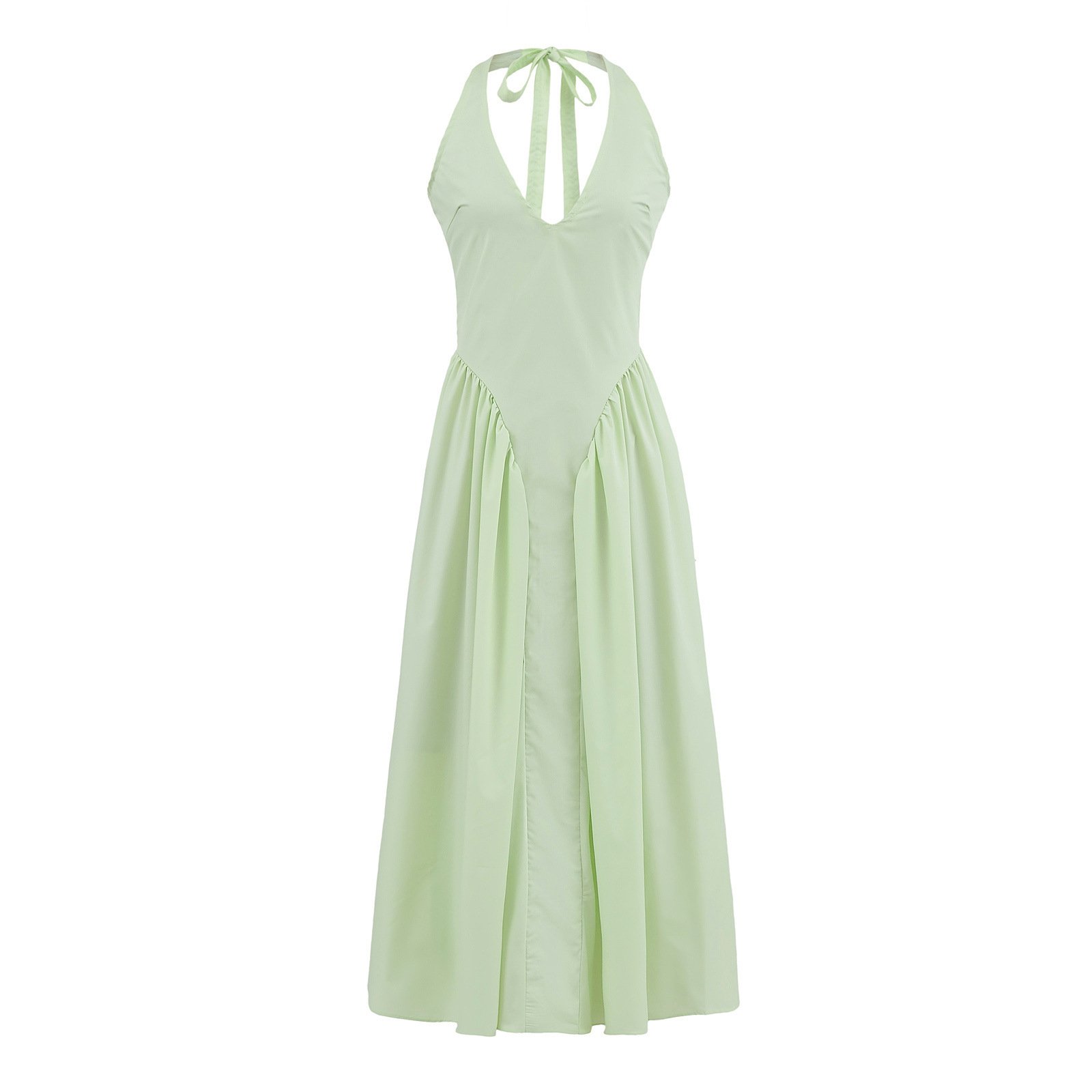 Holiday leisure fresh solid color strap halter neck stitching large swing dress