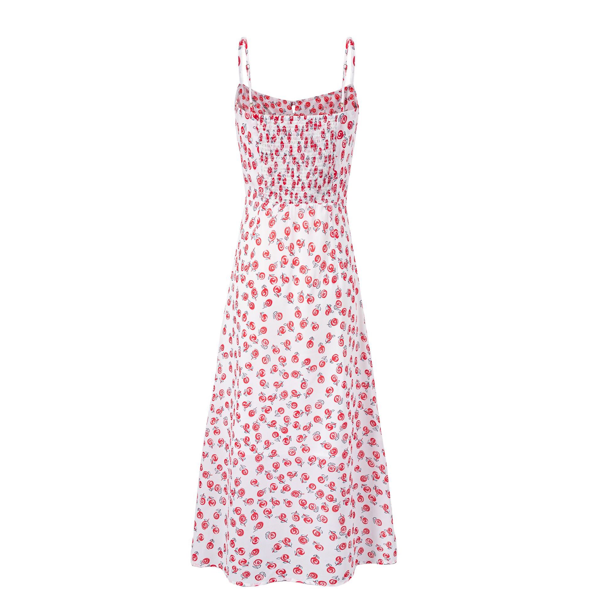 White sexy deep V-neck flocked polka dot mesh suspender dress