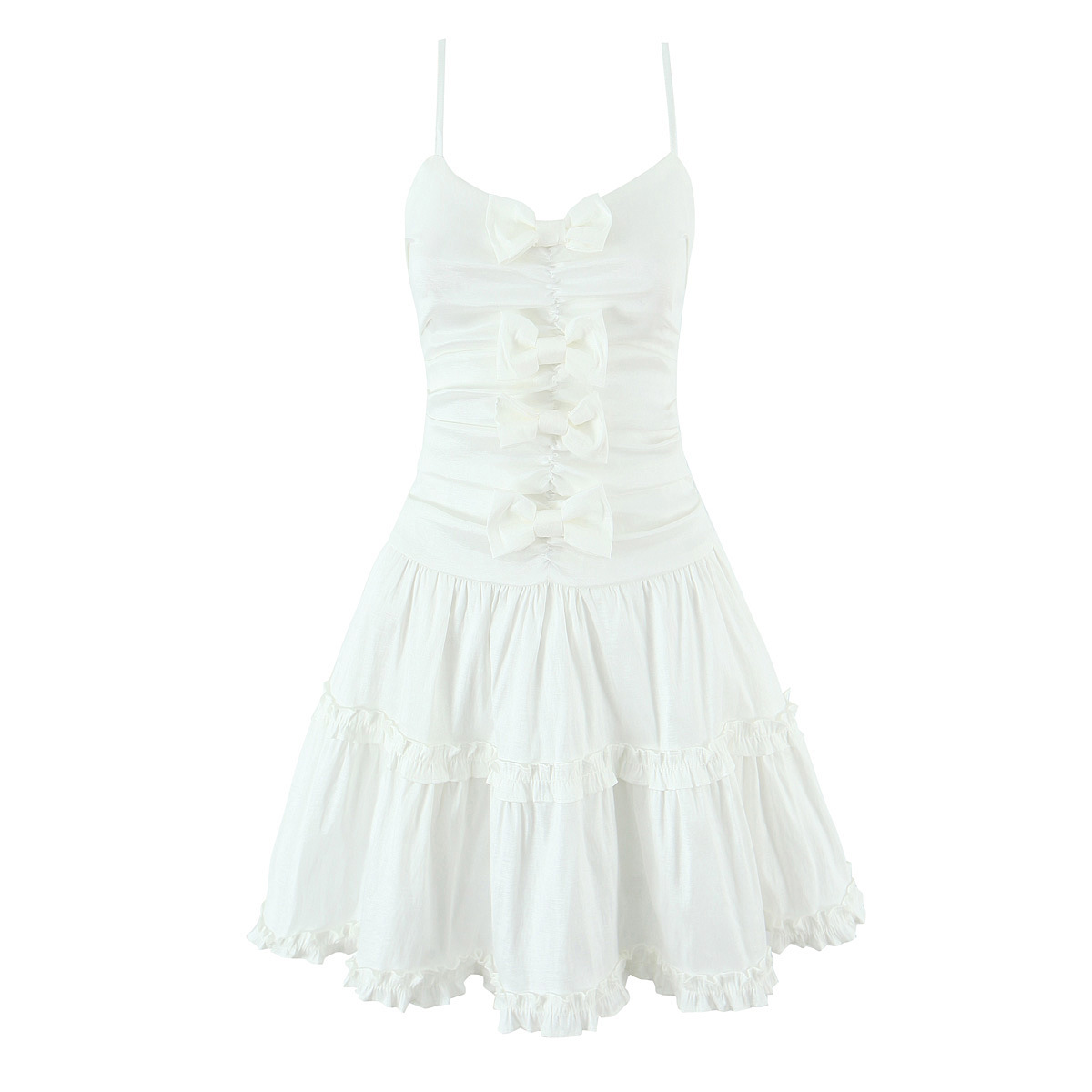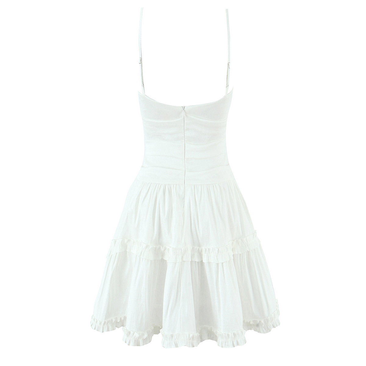 Sweet white Flying Sleeves Herringbone Embroidery Mini Dress