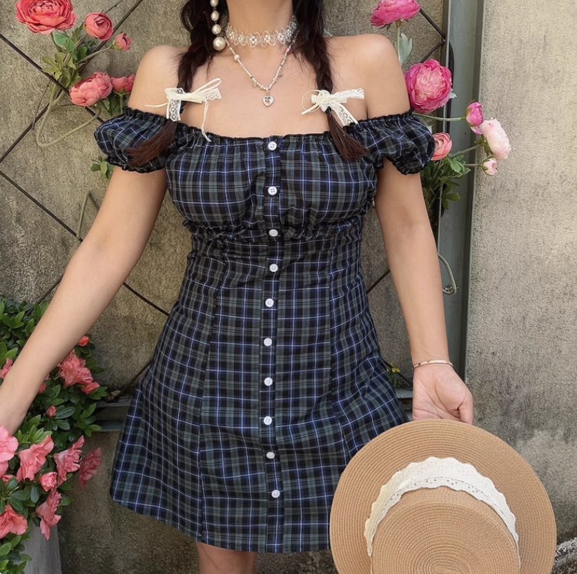 Farm Style One Shoulder Lace Short Sleeve Waist A-Line Dress