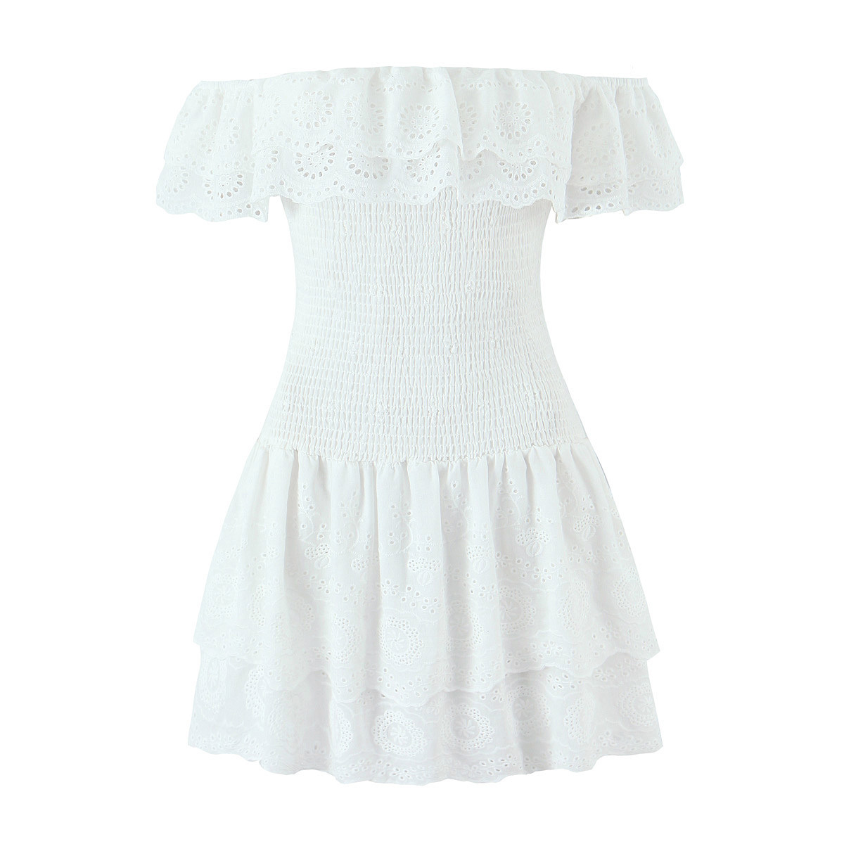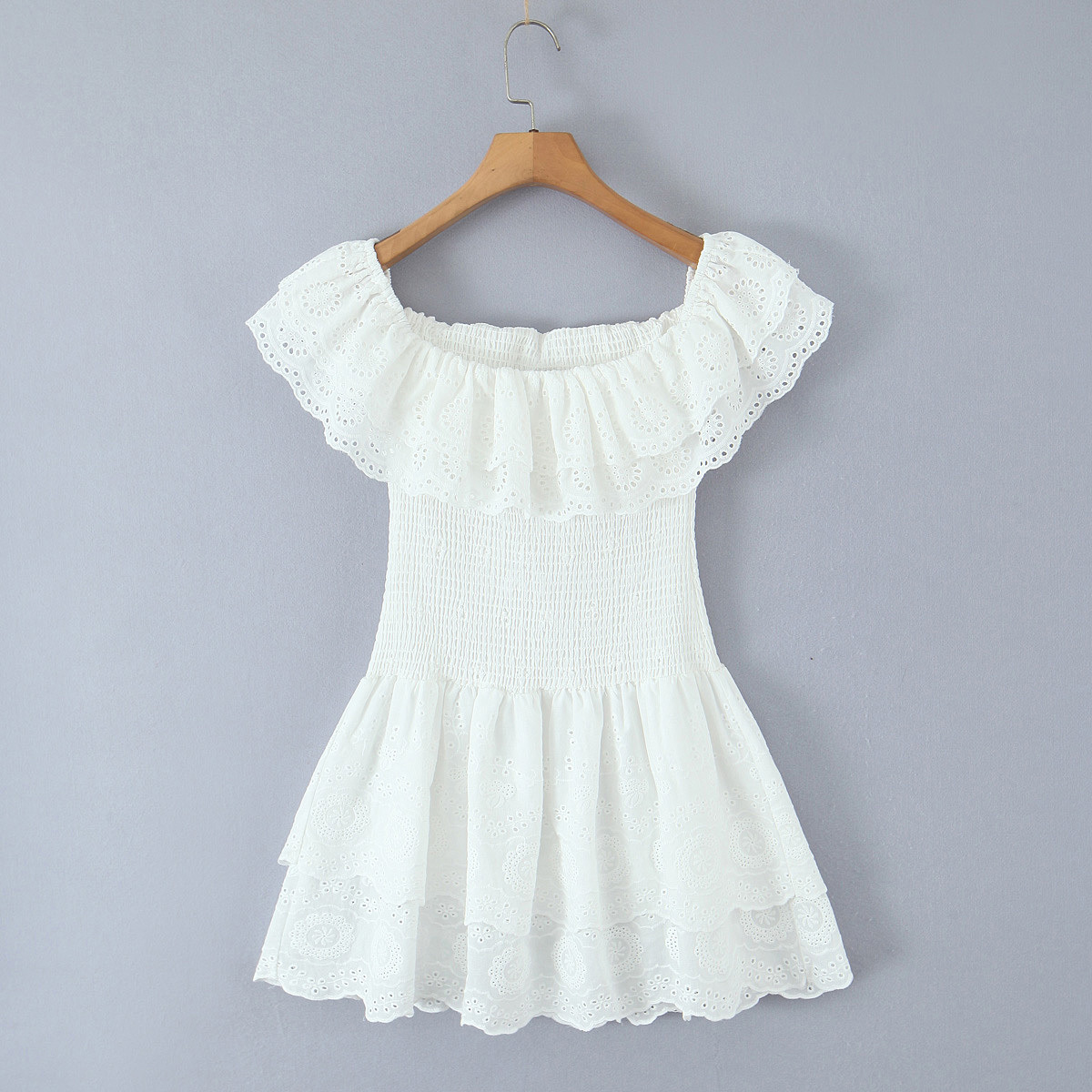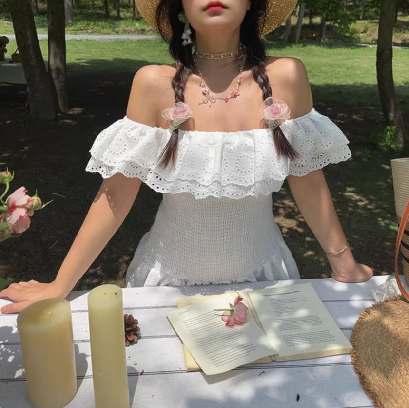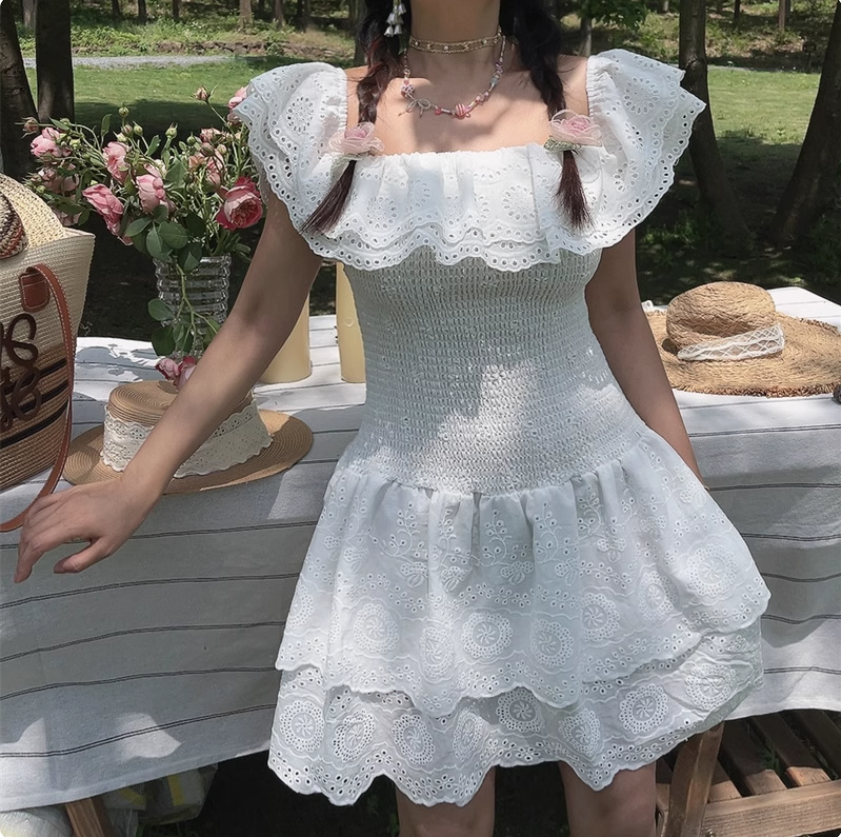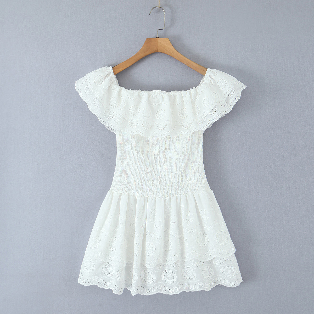 Sexy Large Square Neck Backless Lace Edge Waist A-Line Vest Dress