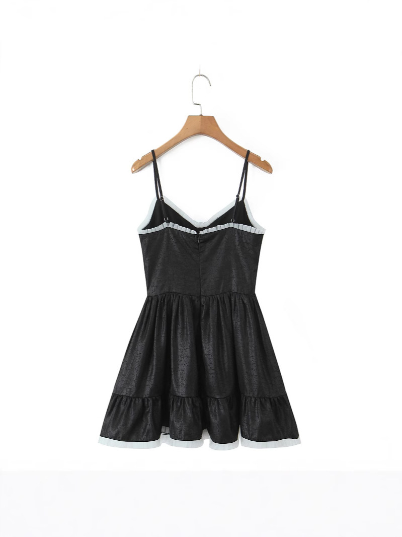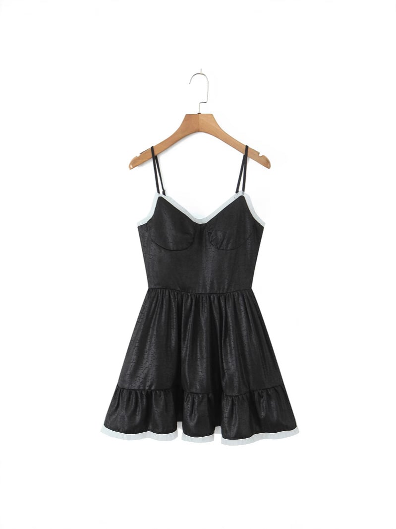 V-neck contrast design chest-baring waist short dress