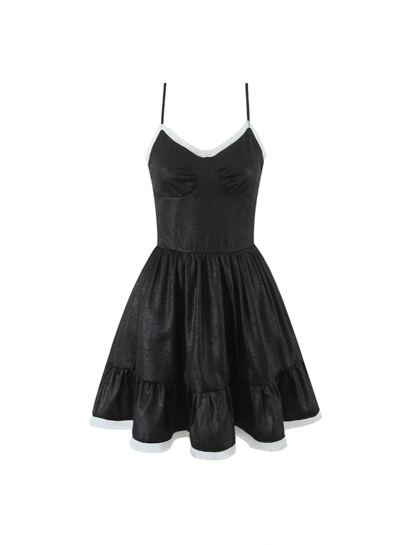 Retro style casual black and white polka dot tube top suspender dress short skirt dress