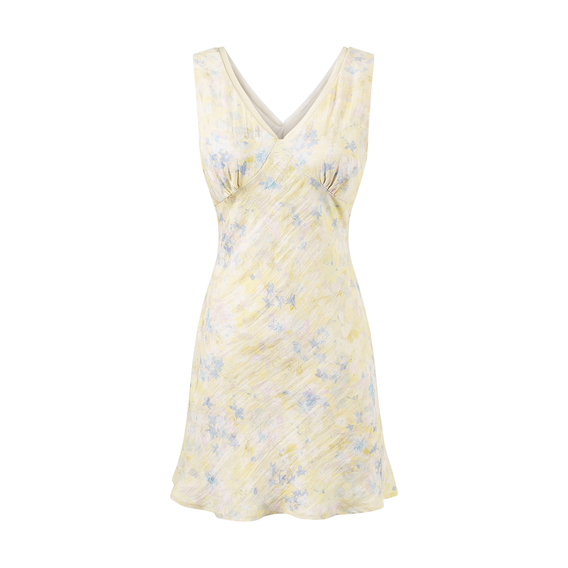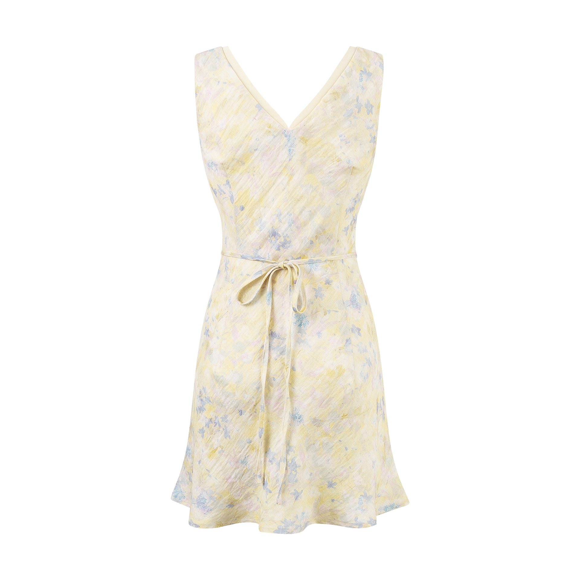 Pastoral style halterneck backless V-neck floral dress high waist holiday style maxi dress