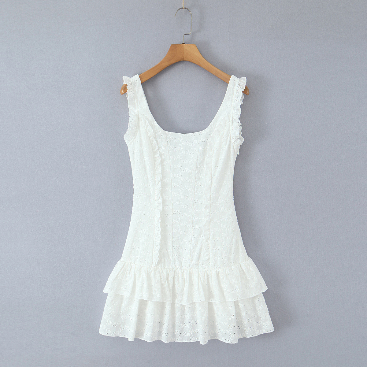 Lace Design Short Dress Ruffle Sleeveless Mini Dress