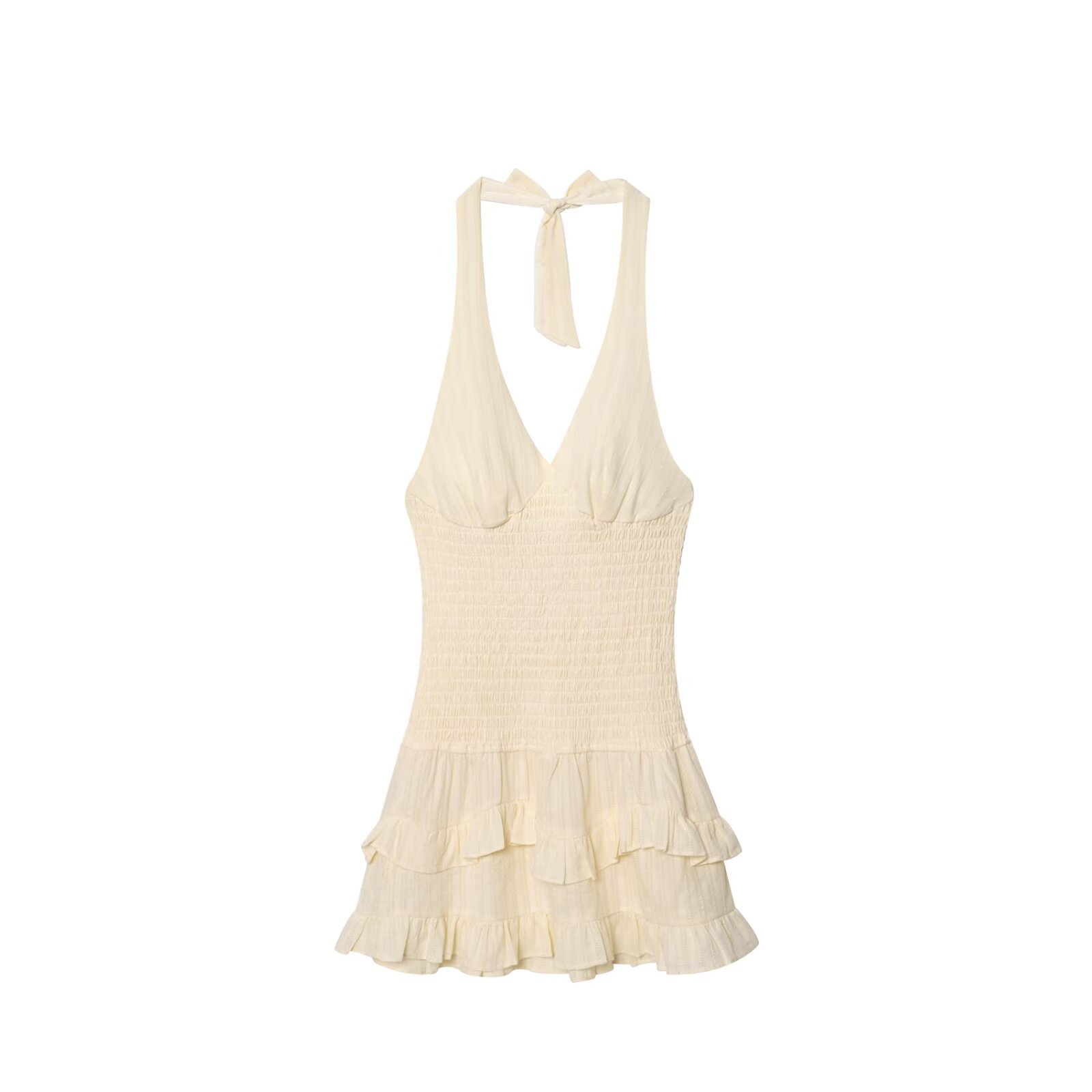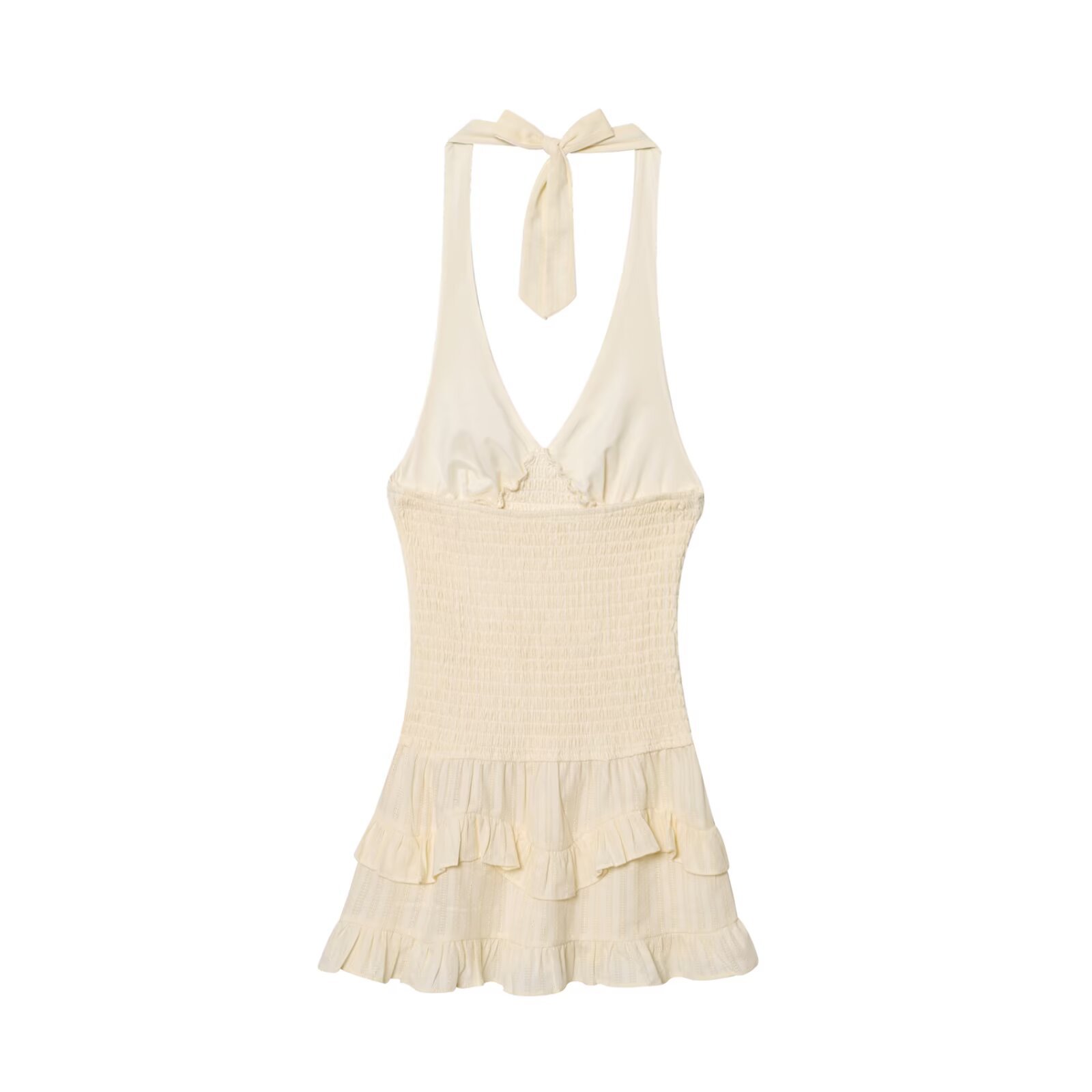 Casual V-neck halterneck sleeveless backless ruffled midi dress