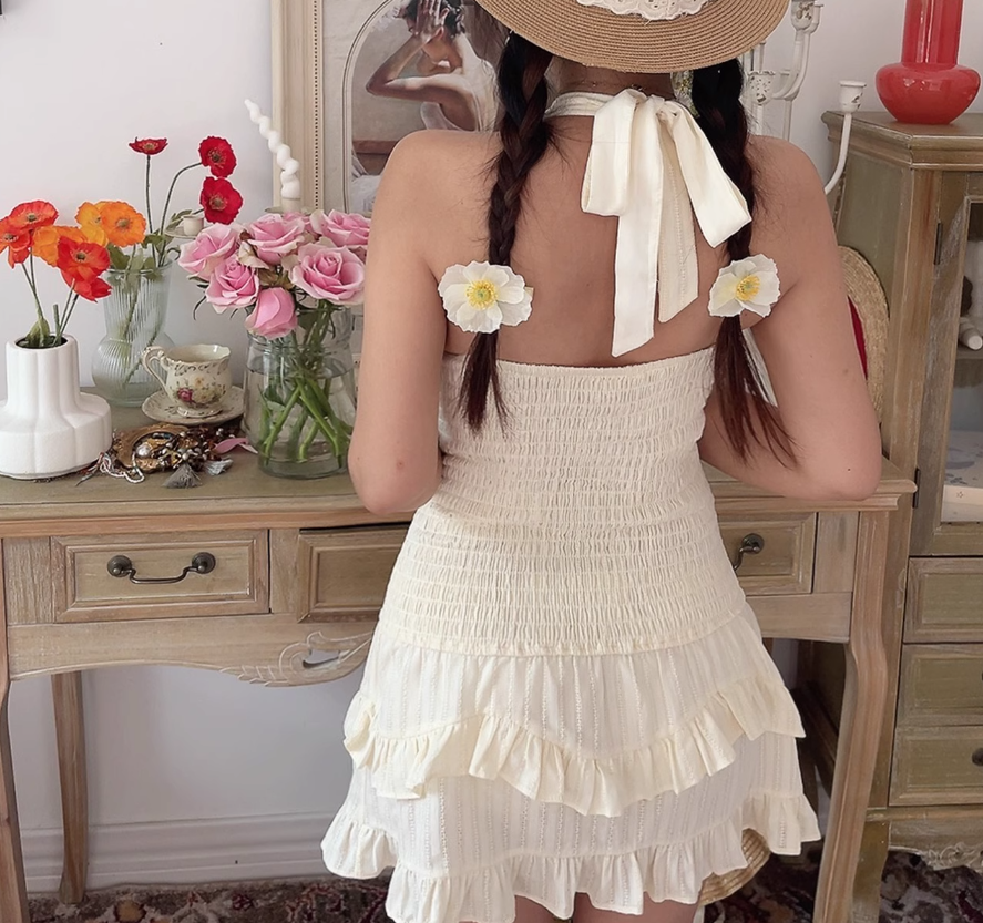 Sexy backless floral A-line suspender skirt