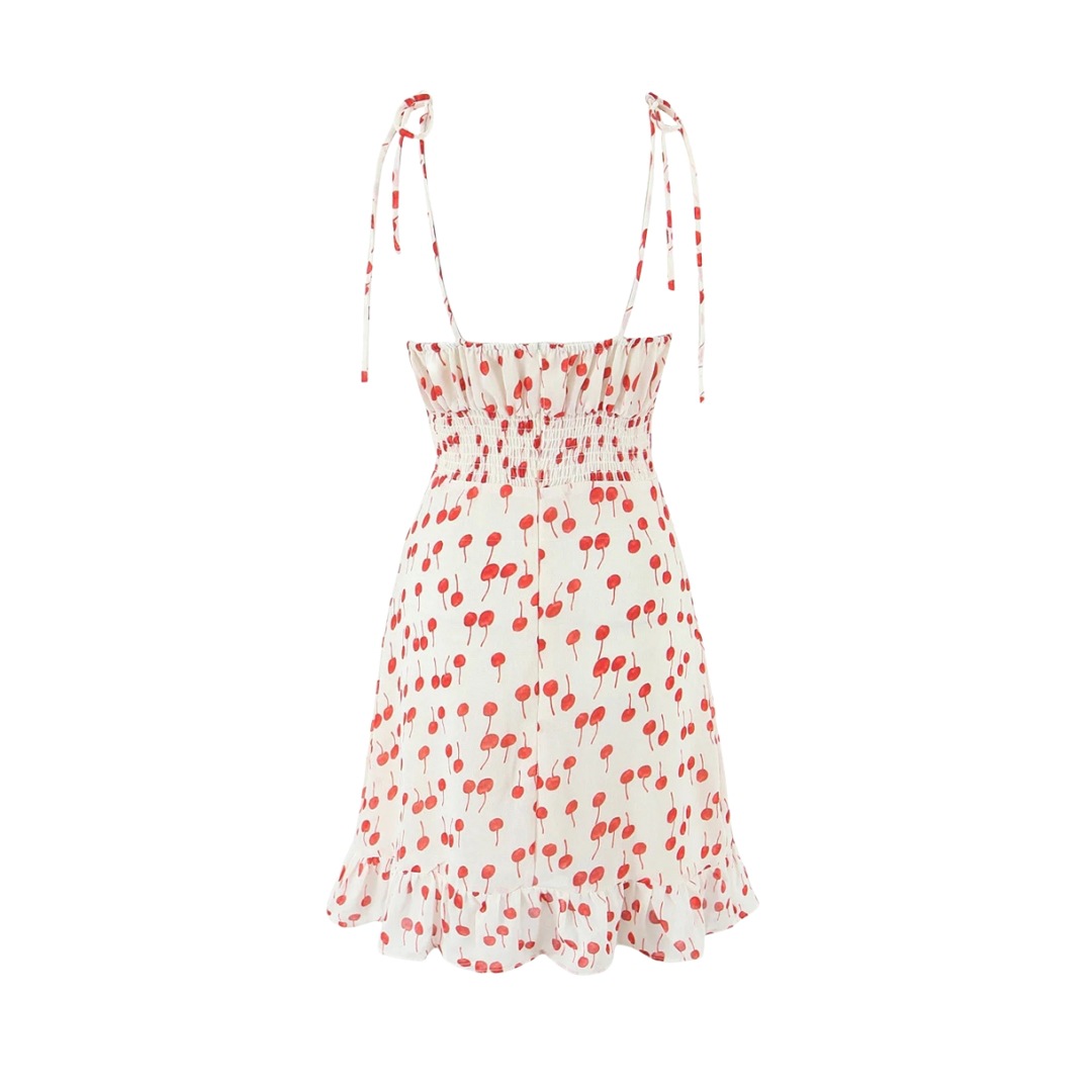 Retro style lace V-neck waist A-line short skirt dress