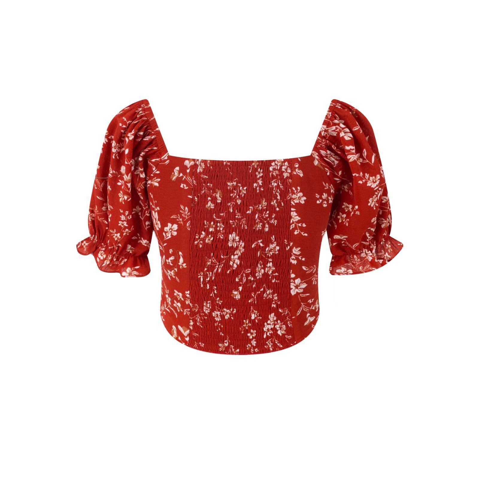 Square collar flower sleeves tie short sleeves casual baby doll blouse