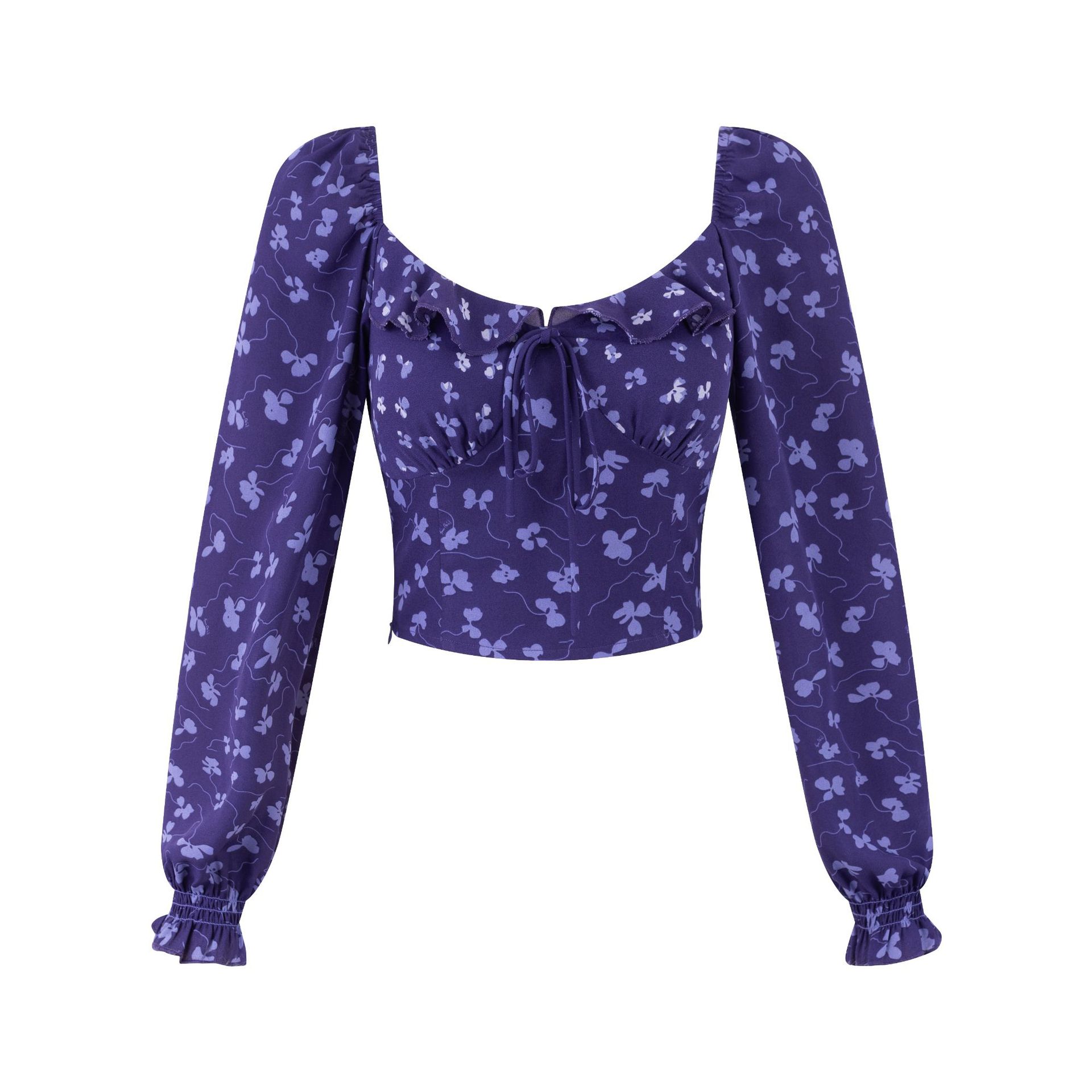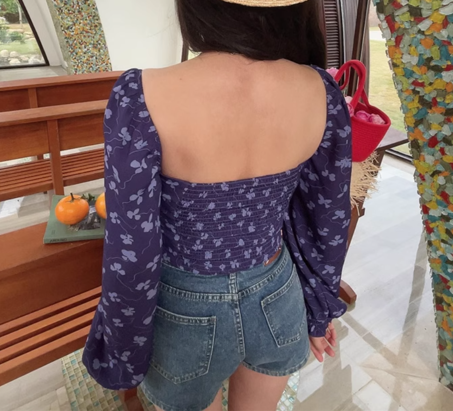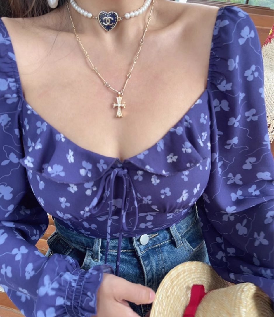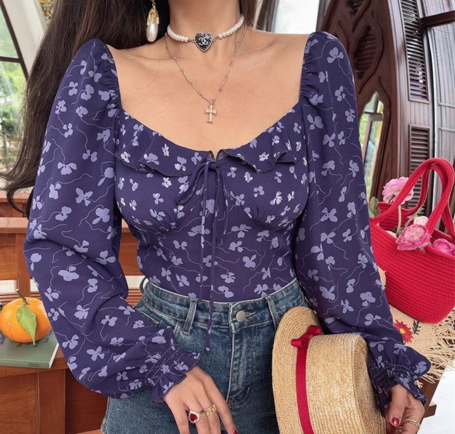 Sexy Square Neck Holiday Casual Floral Print Long Sleeve Shirt