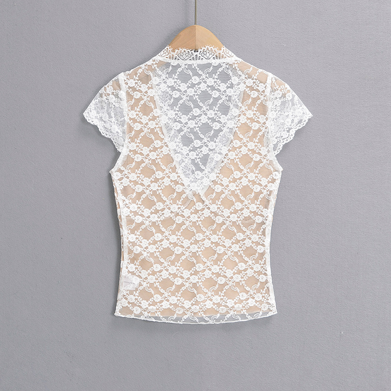 Casual Lace Lightweight V-neck Short Sleeve T-shirt
