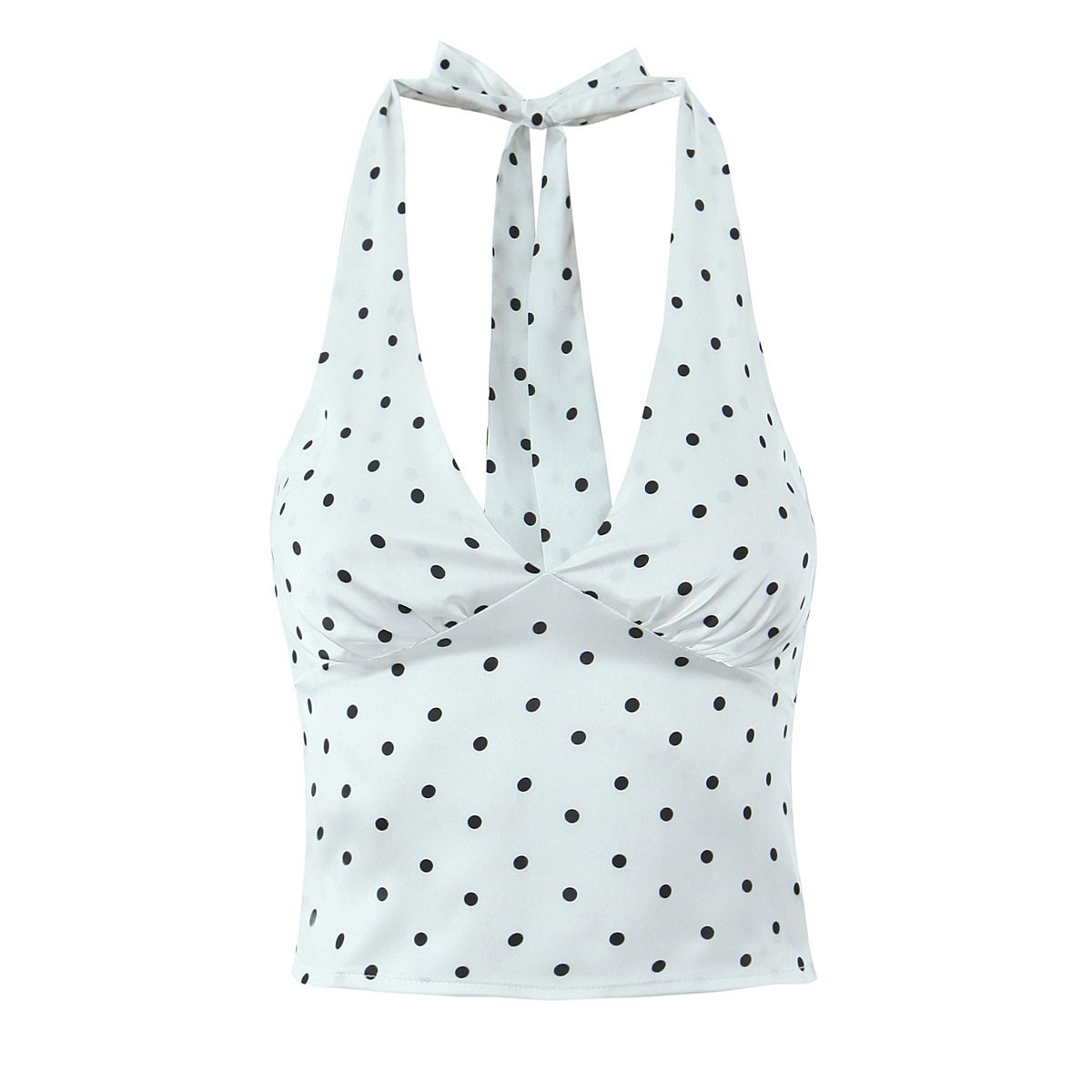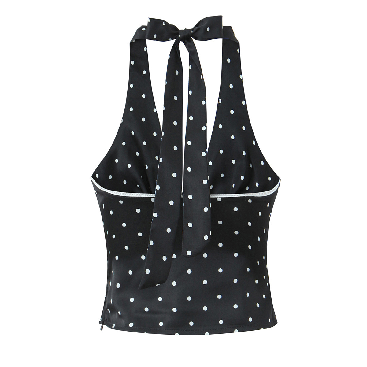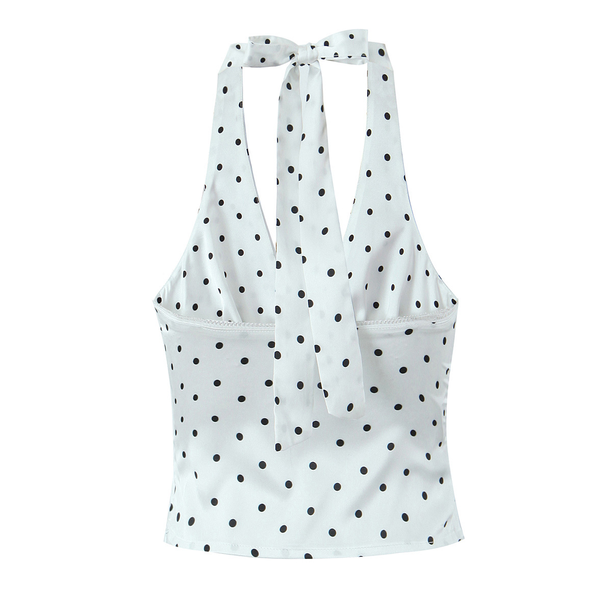 Retro V-neck camisole top with backless polka dot print halter neck short vest
