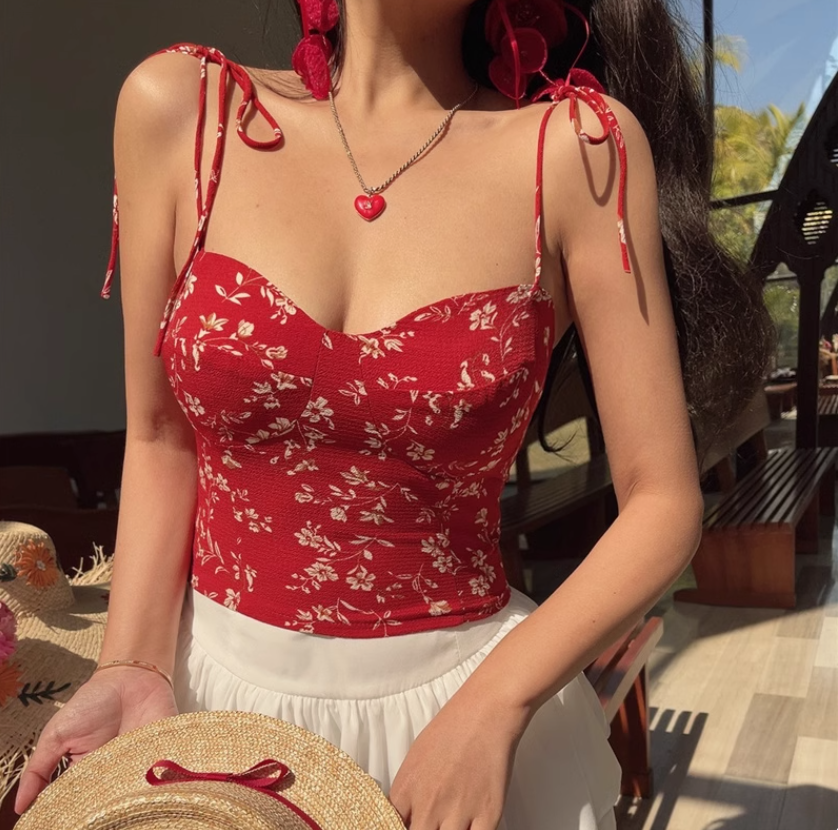Retro holiday style hot girl sexy slim floral strappy camisole