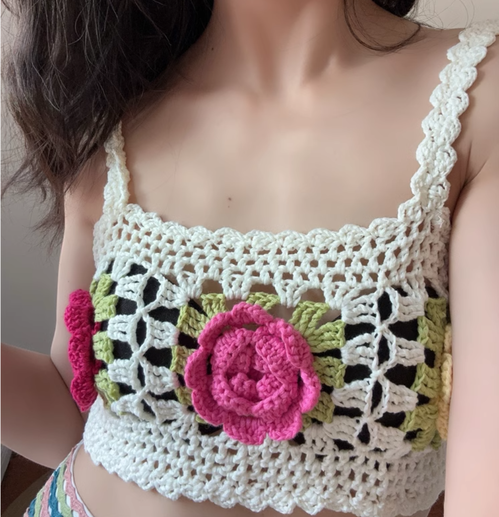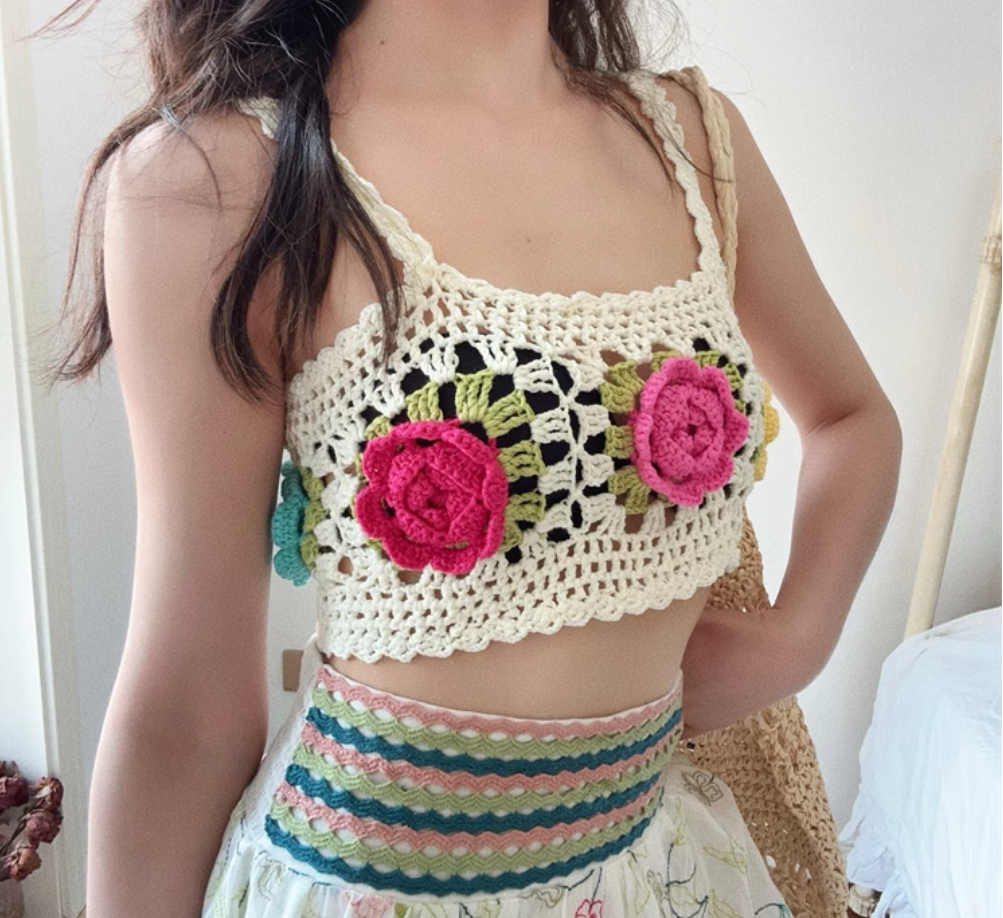 Retro palace style short style navel-baring floral lace-up square collar short-sleeved shirt