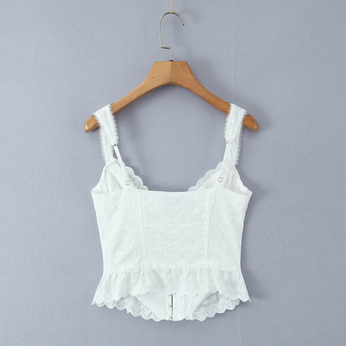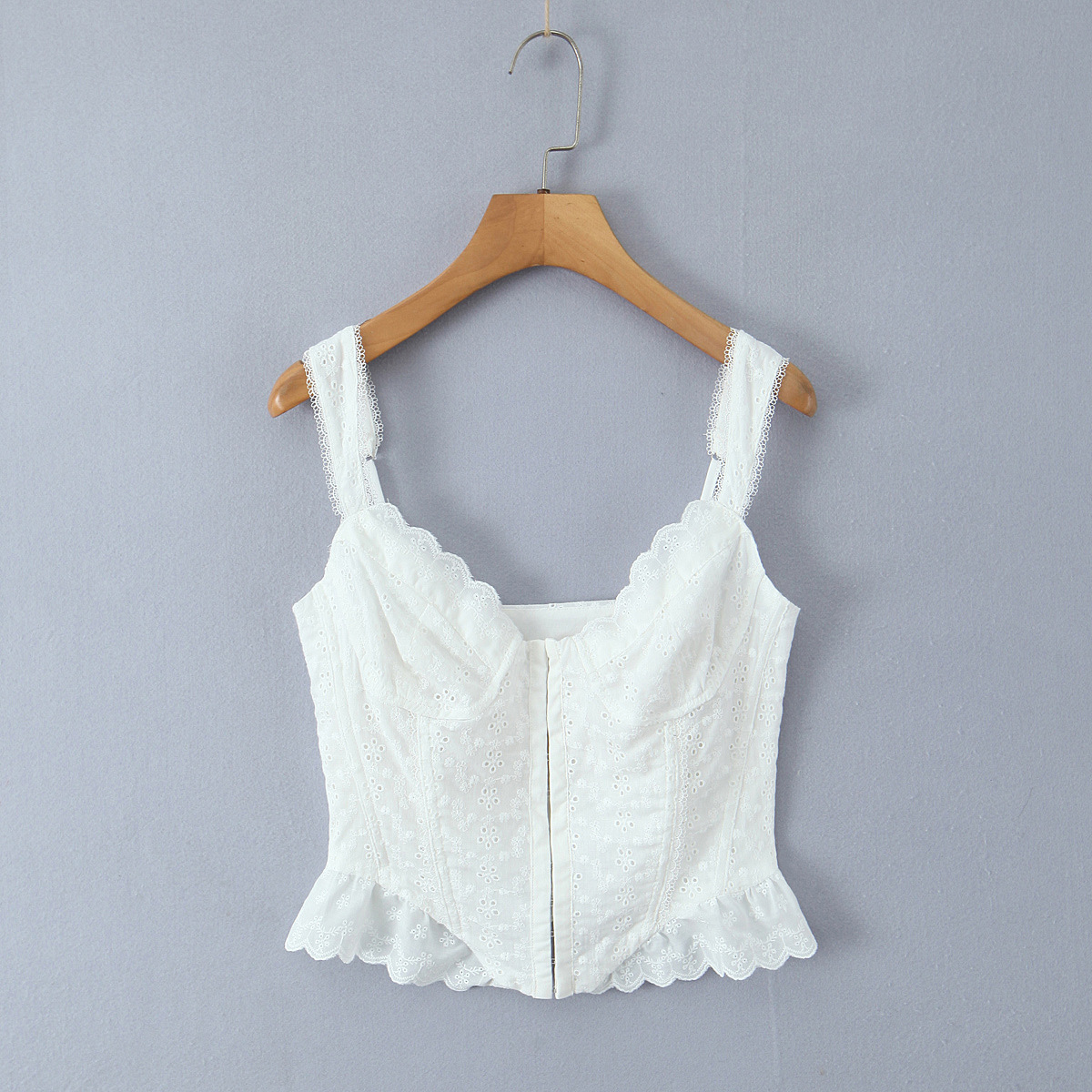 Retro style small flower embroidery lace stitching fishbone slim fit top camisole