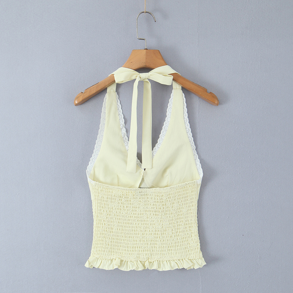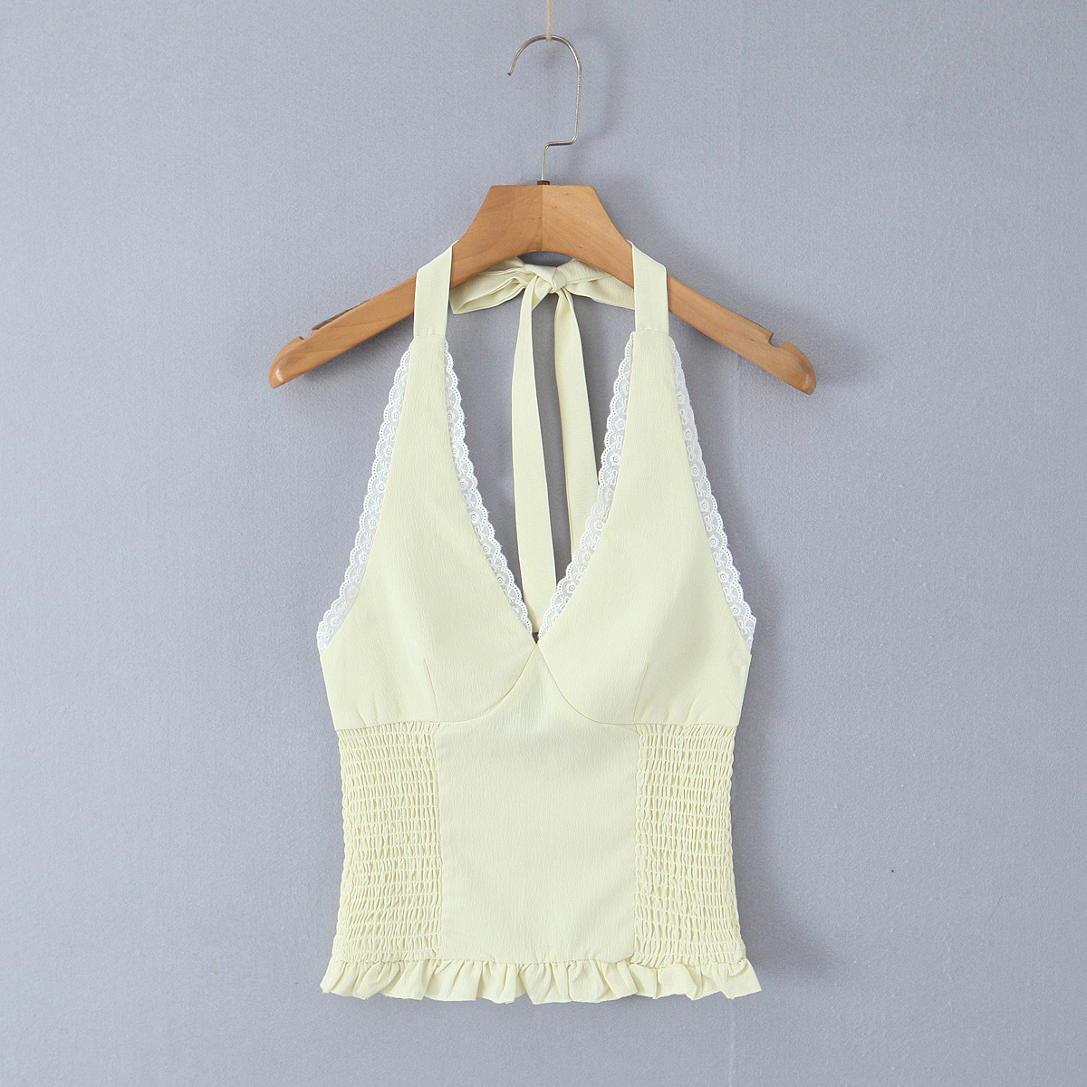 Retro romantic lace casual square neck lace sexy super short T-shirt