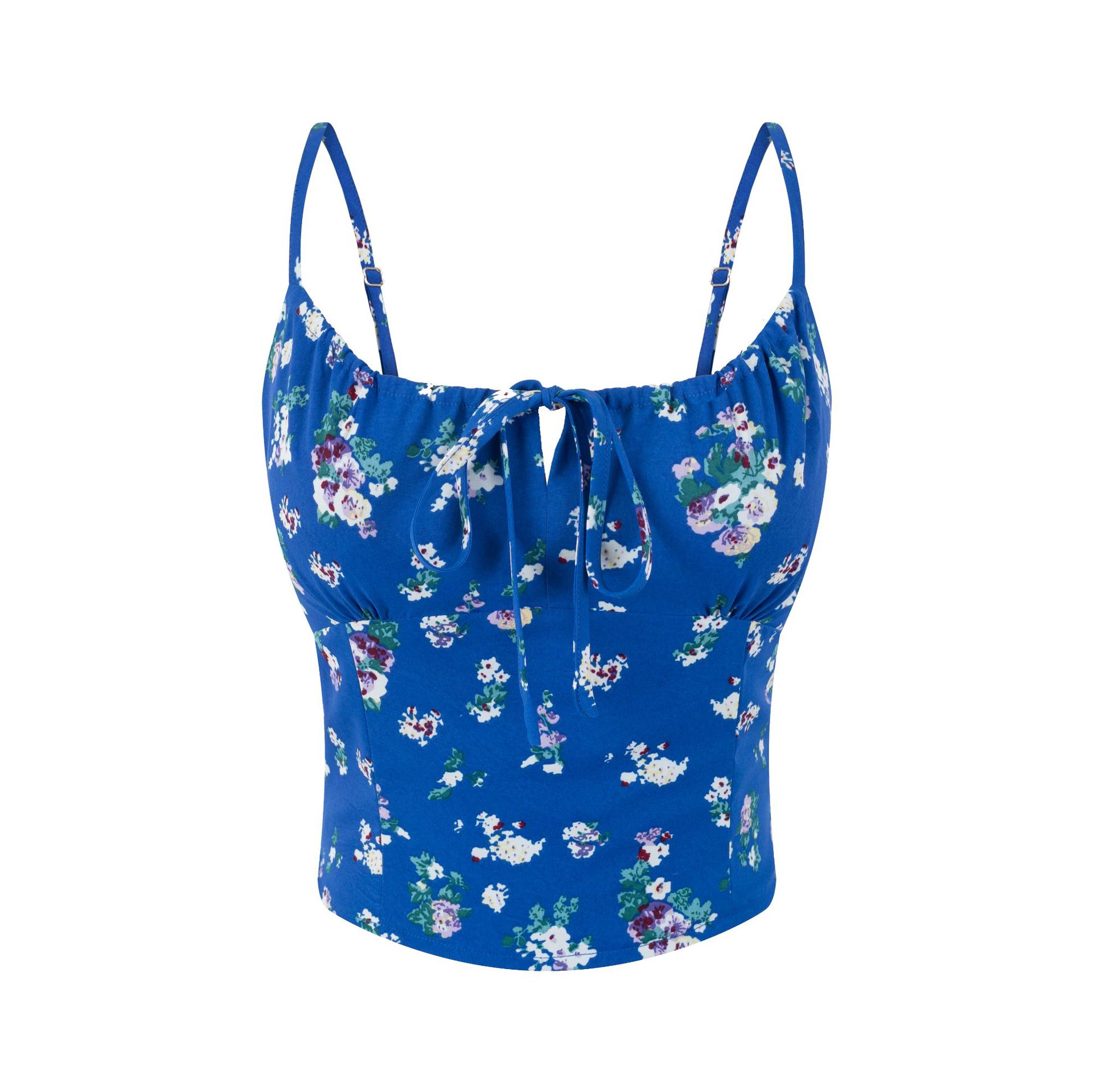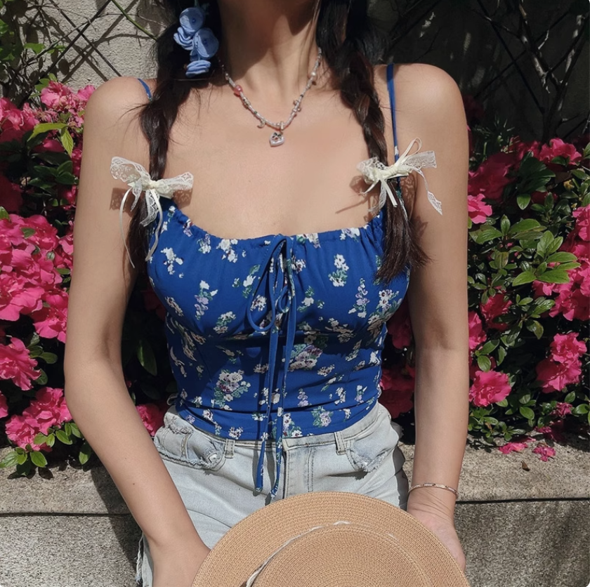 Retro chest drawstring straps holiday casual slim fit top camisole