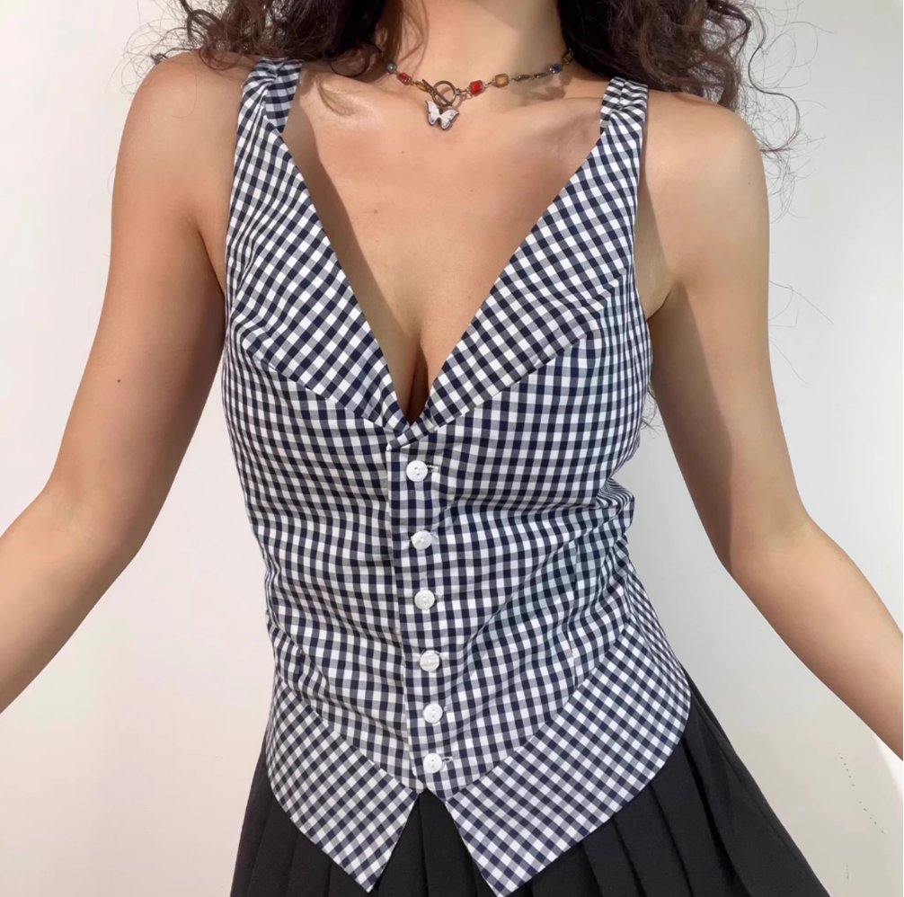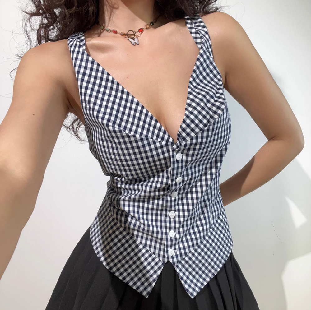 Plaid V-neck single-breasted slim fit simple casual top vest