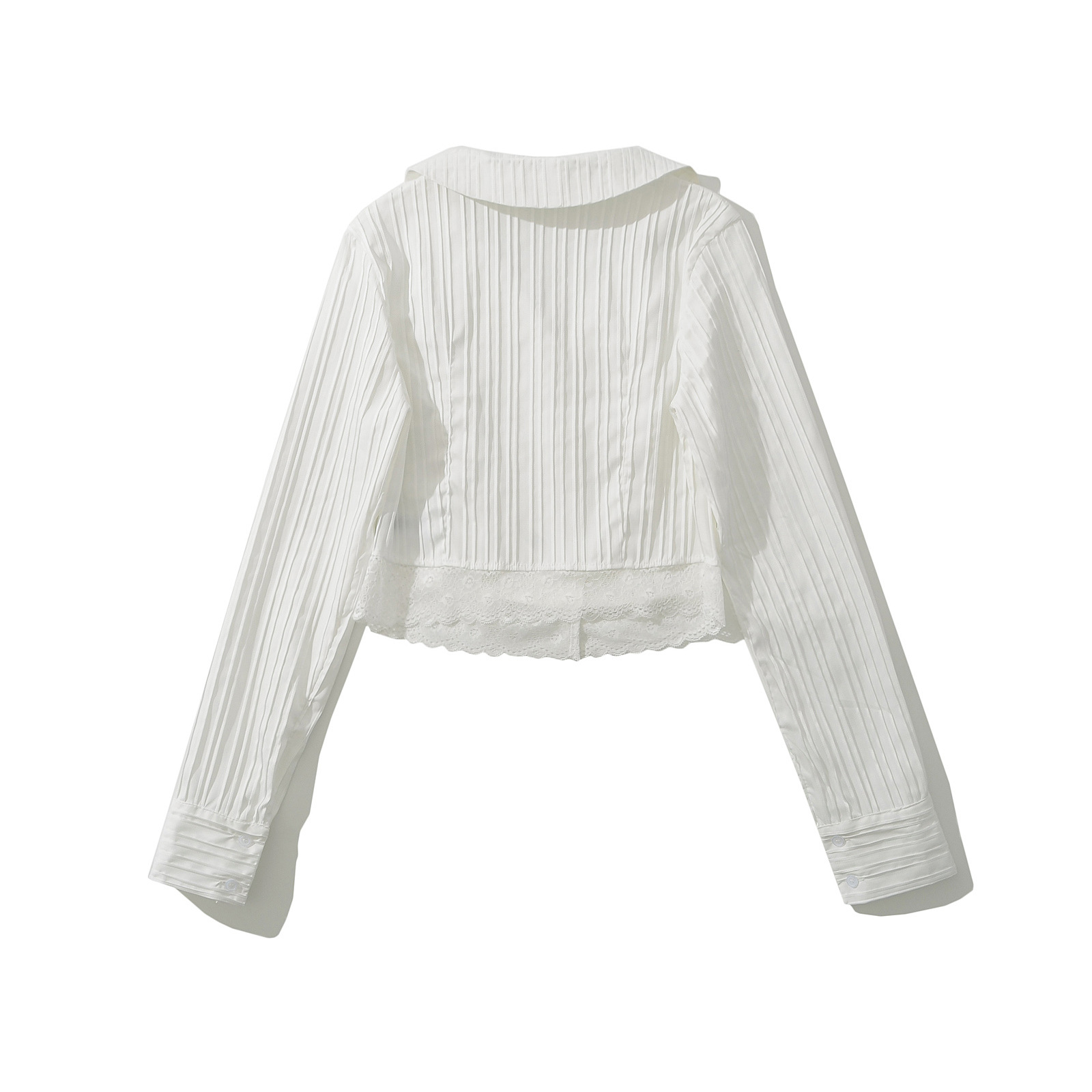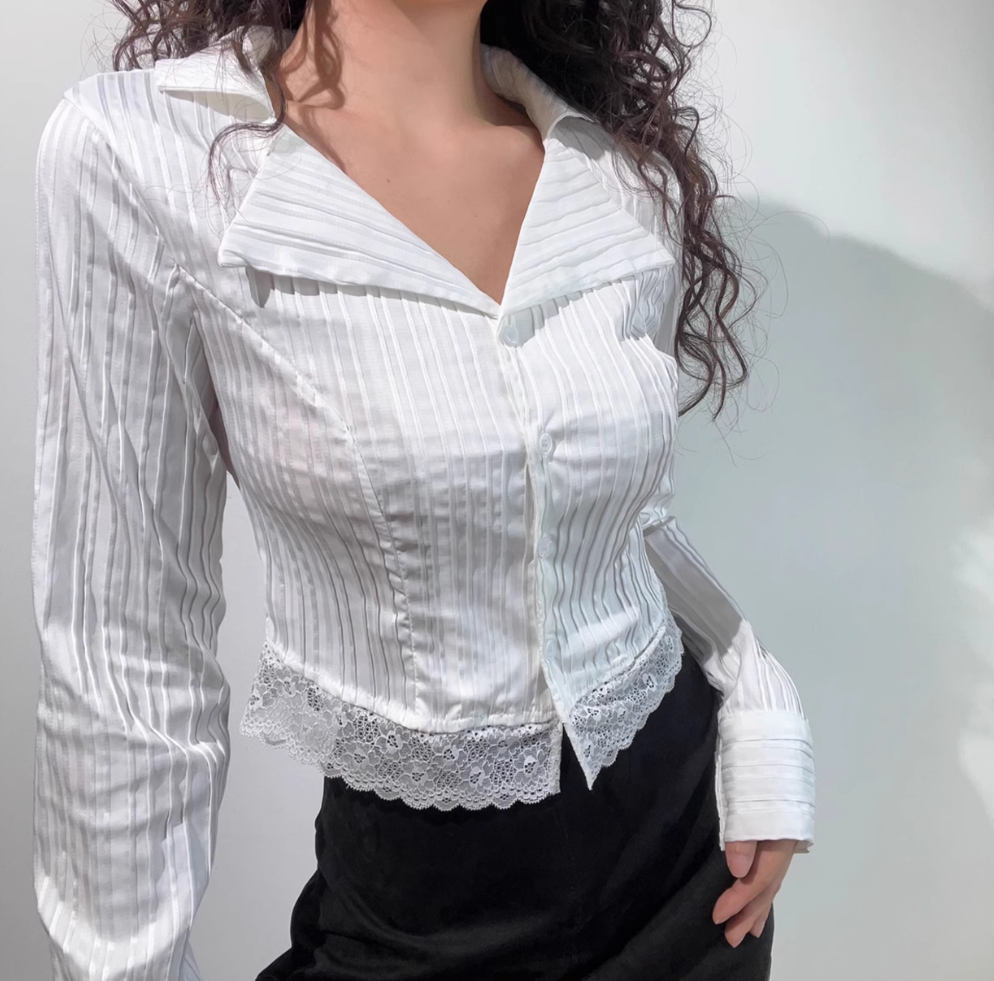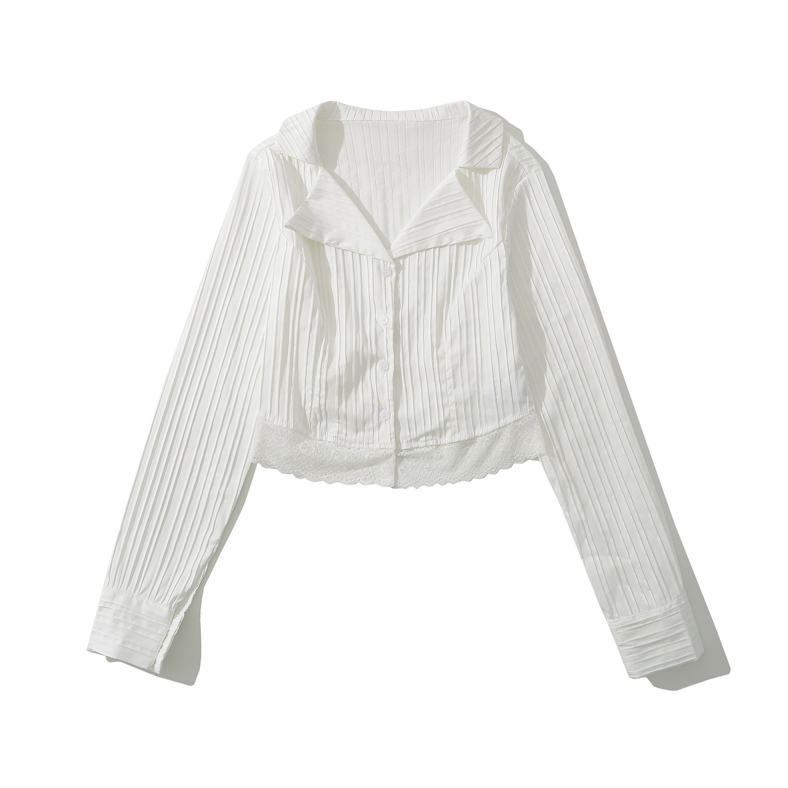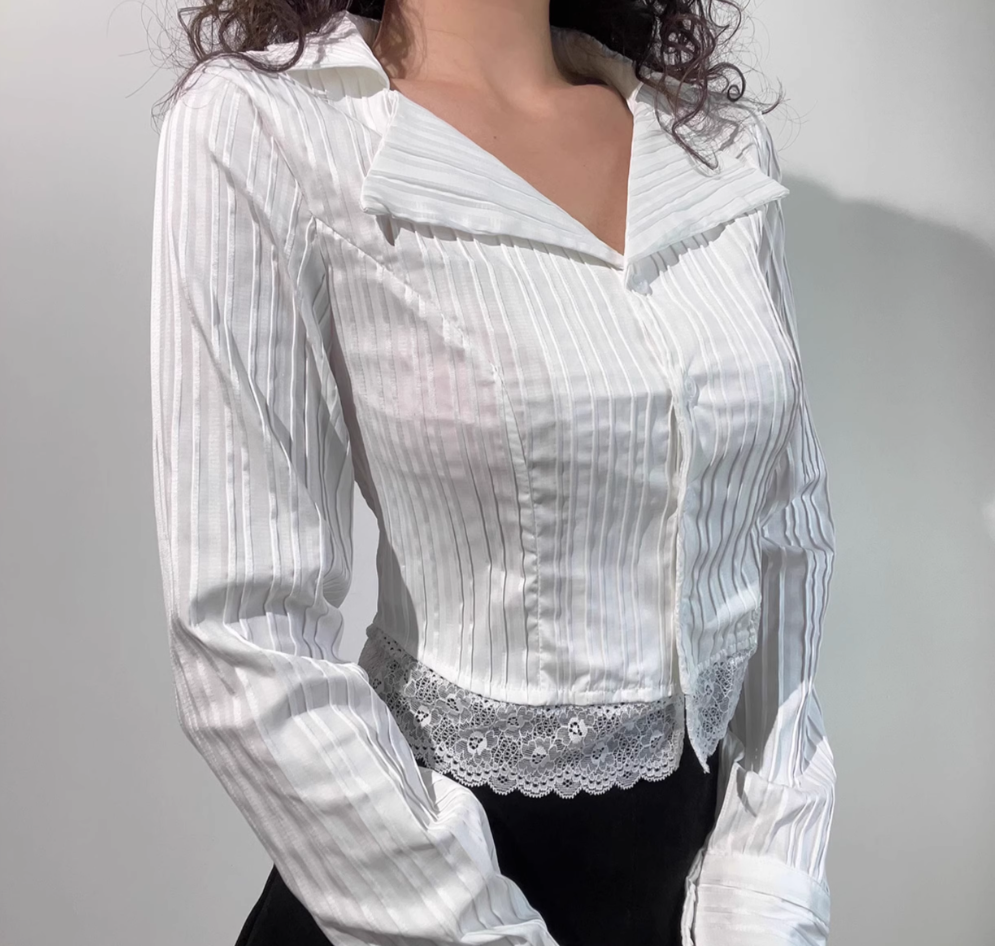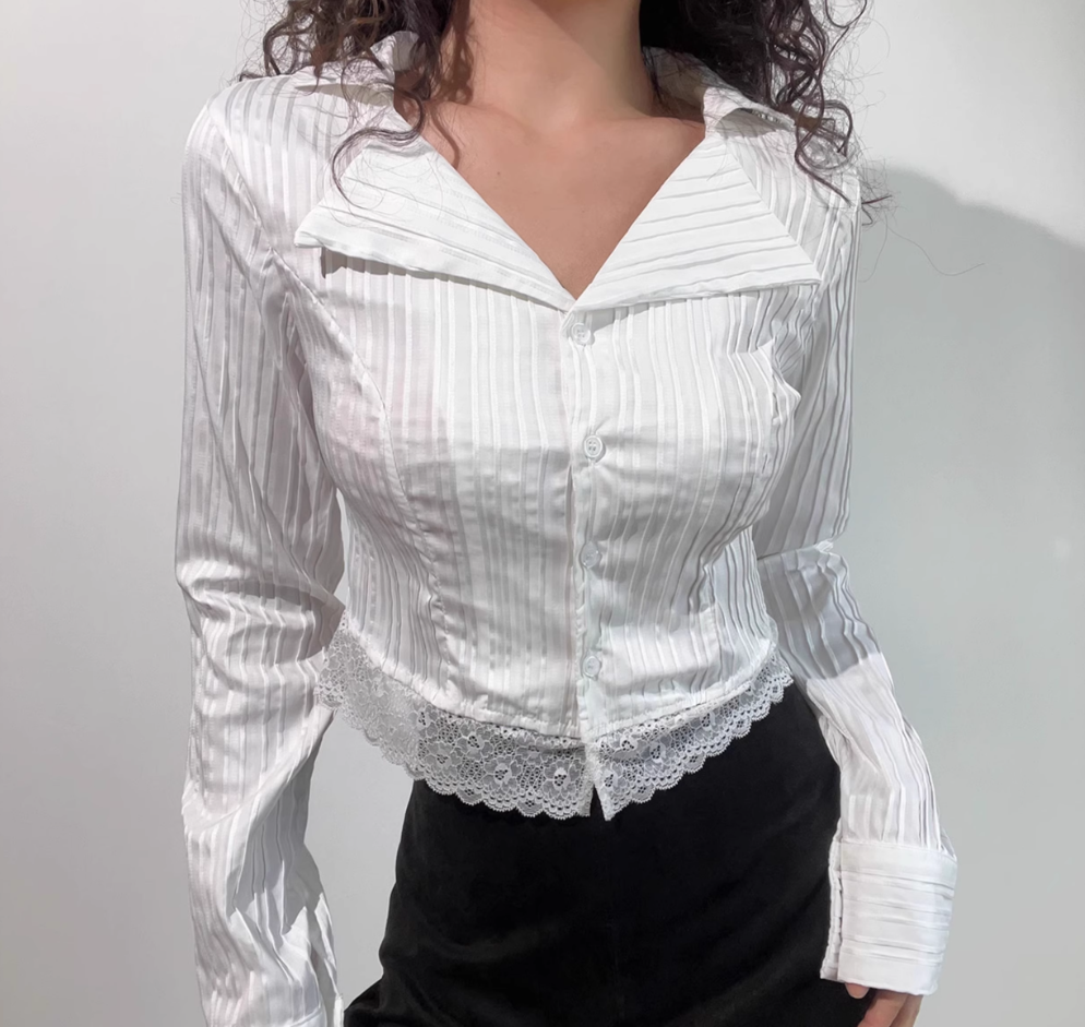Sexy Hot Girl Lace Long Sleeve Vertical Striped Button Short Shirt