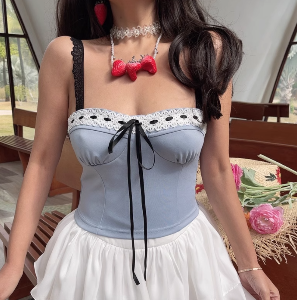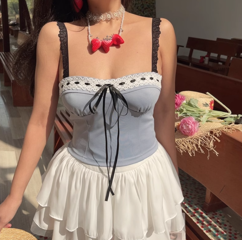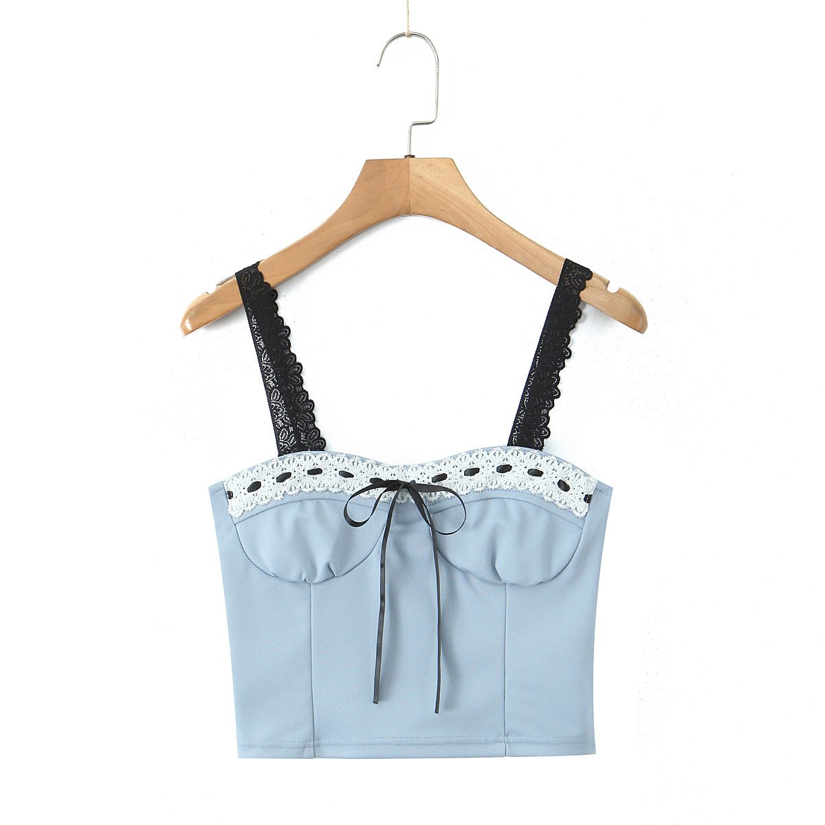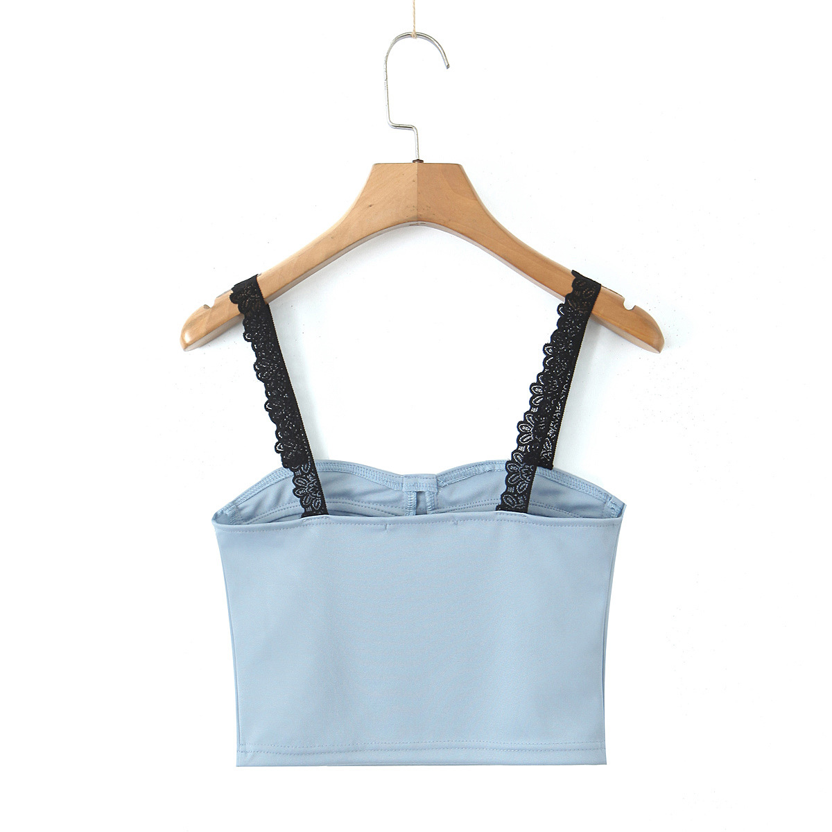 Retro chest drawstring straps holiday casual slim fit top camisole
